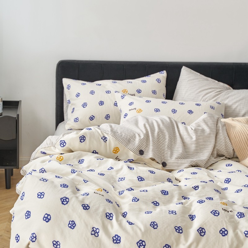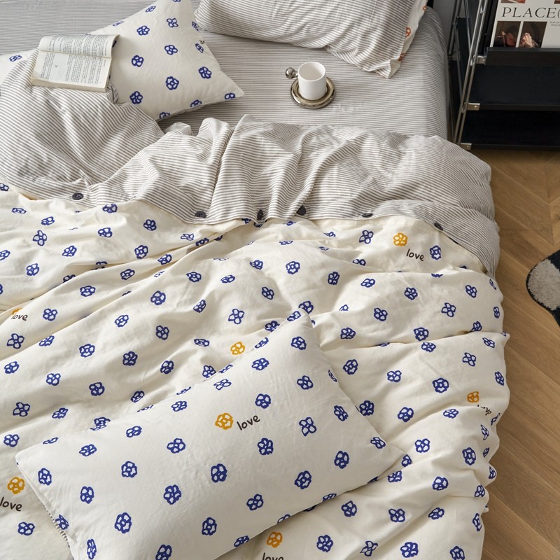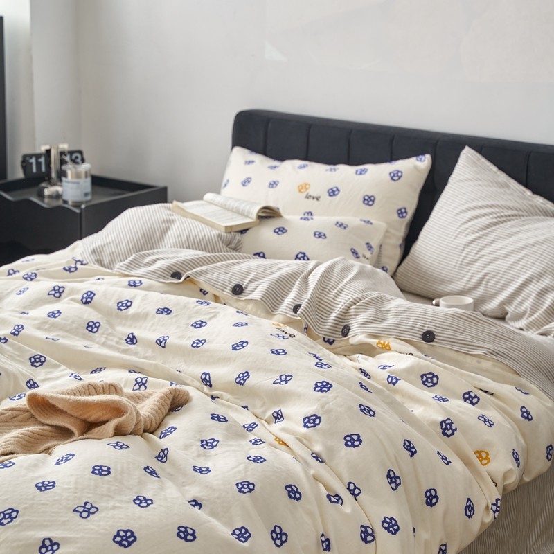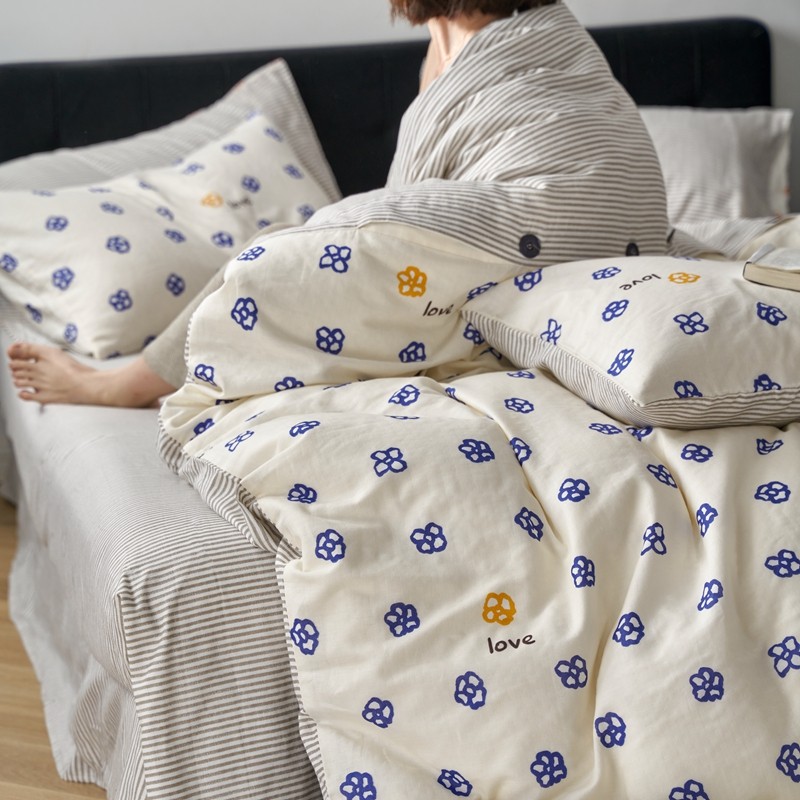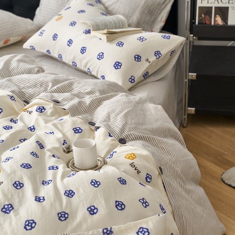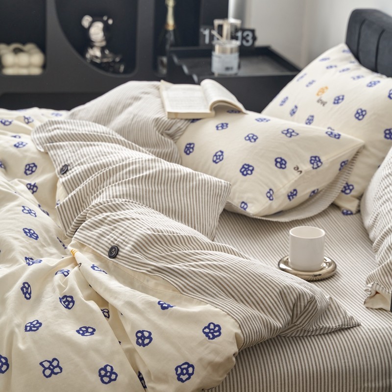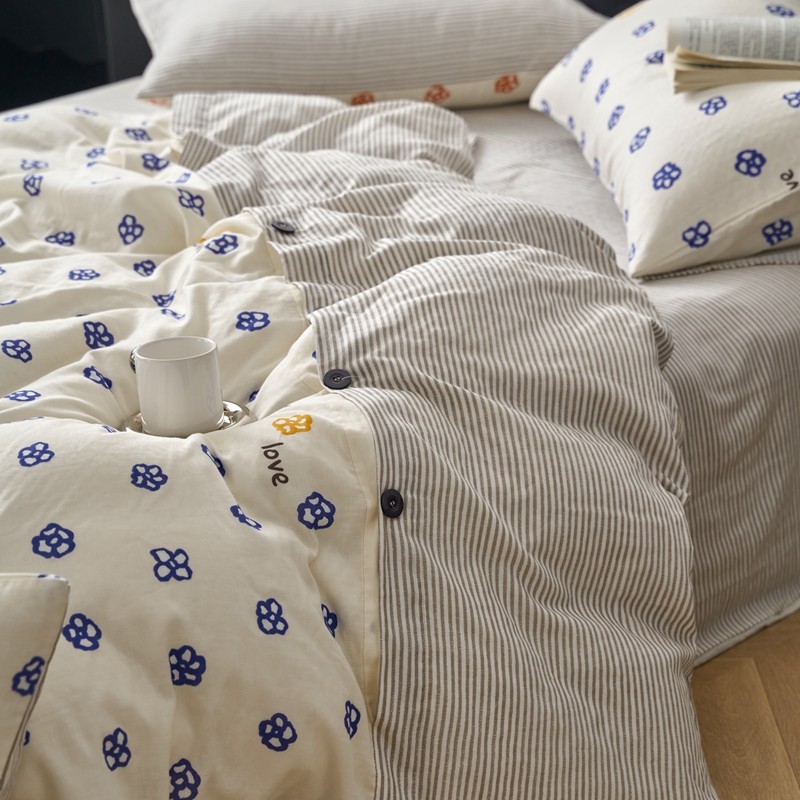 商品名称:时年 2023新款全棉母婴级有氧双层纱纽扣工艺款四件套-场景一 休闲时代-兰