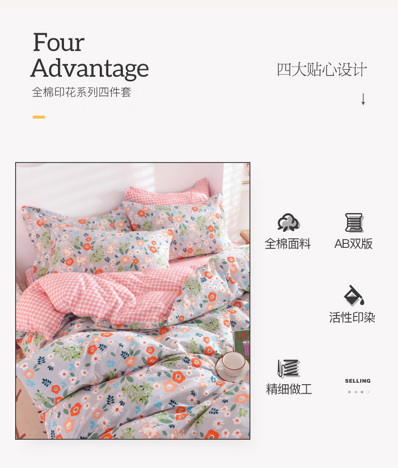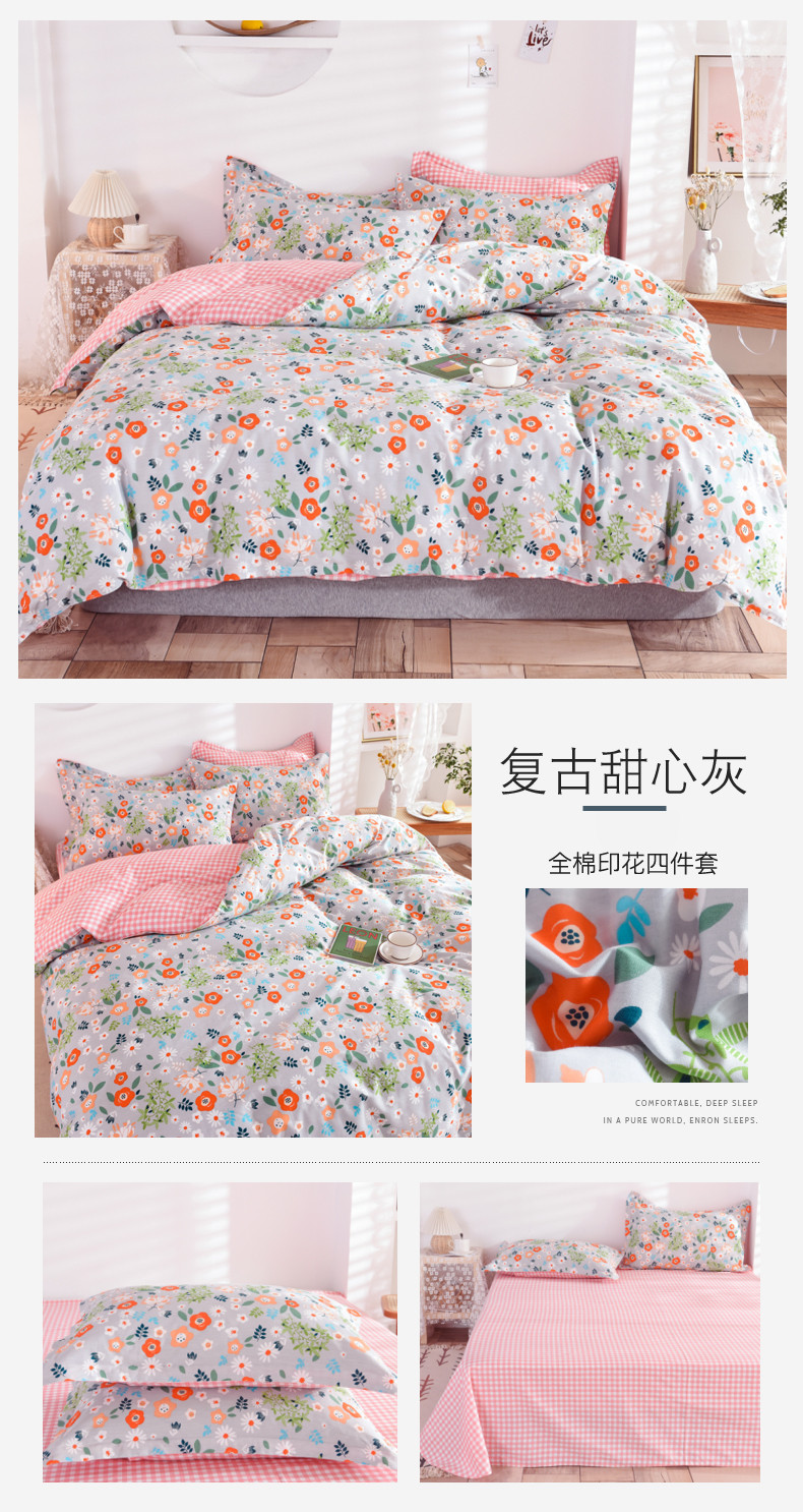 当前位置: 91家纺网 > 商品网购 > 床品套件 > 四件套 > 全棉普通四件套 > 多品家纺 2023新款12868全棉印花四件套系列第二批 复古甜心-灰