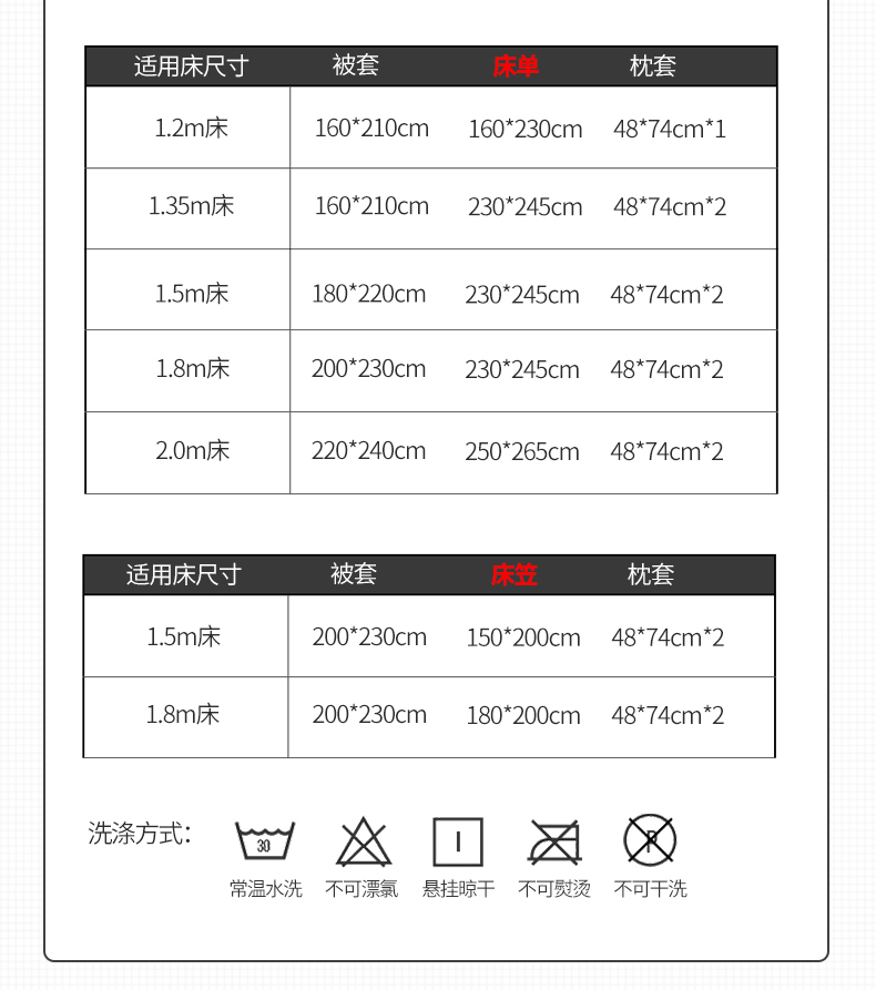 1.5m床单款四件套(被套180*220cm) | ¥90.00 |