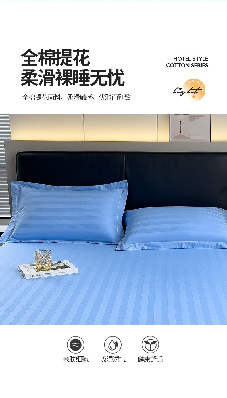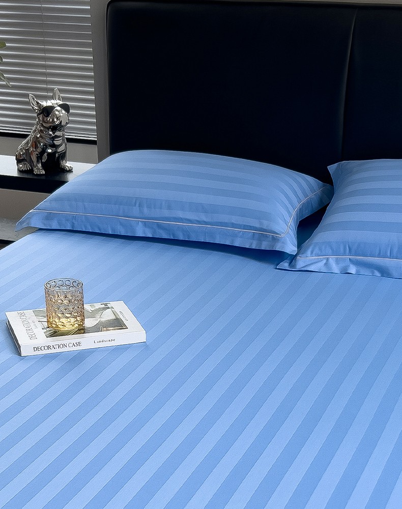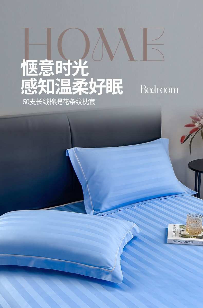 慕尚 2025新款60支长绒棉提花条纹系列单品枕套 条纹天蓝