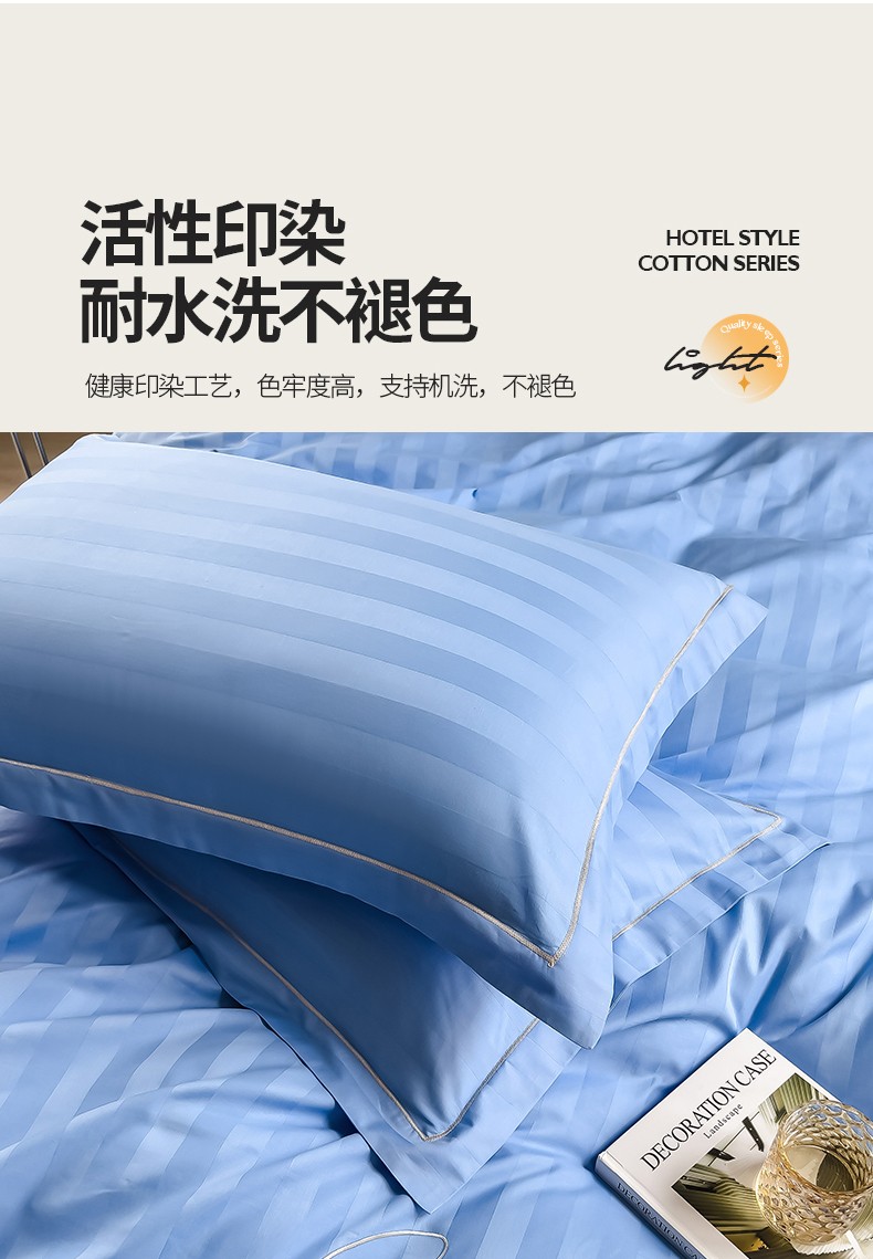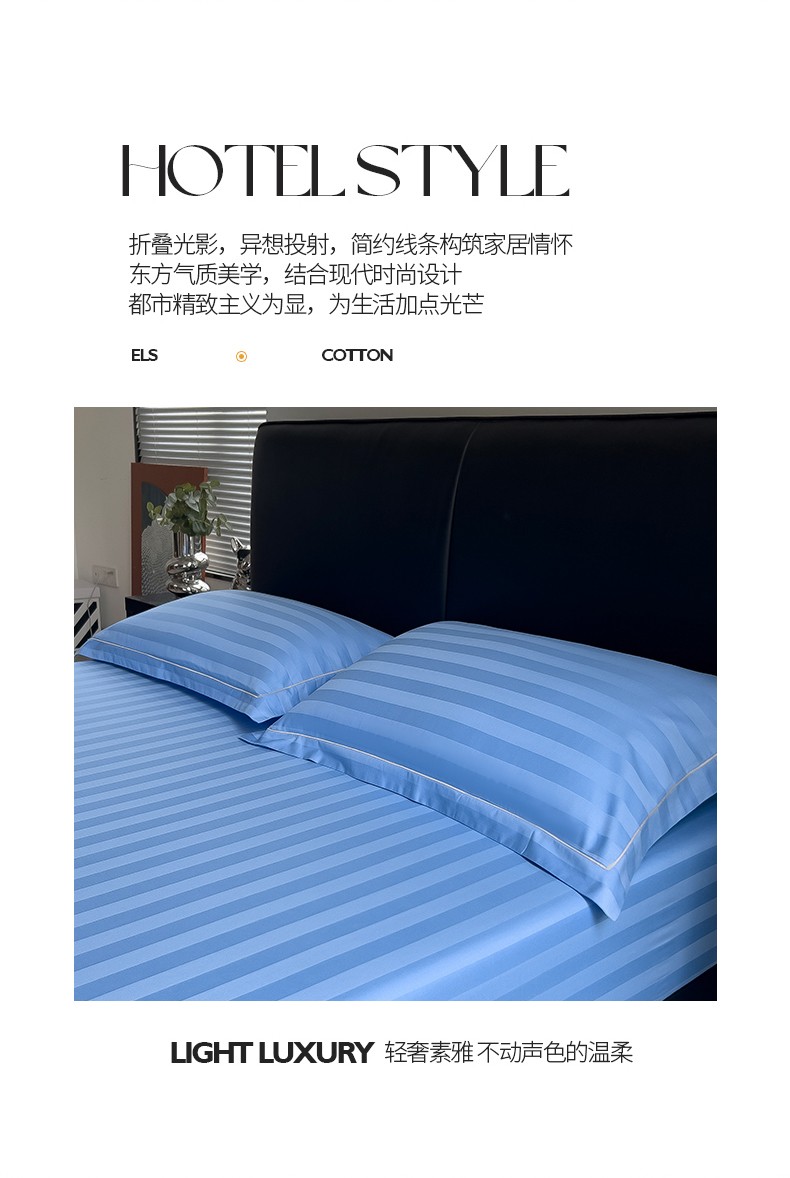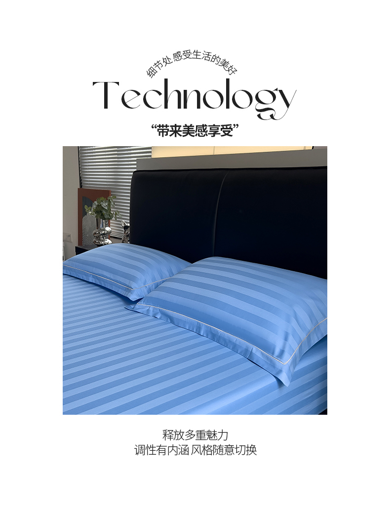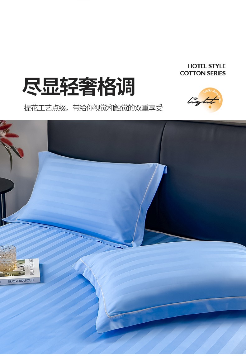 商品名称:慕尚 2025新款60支长绒棉提花条纹系列单品枕套 条纹天蓝
