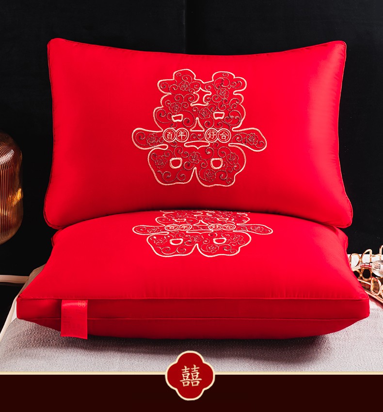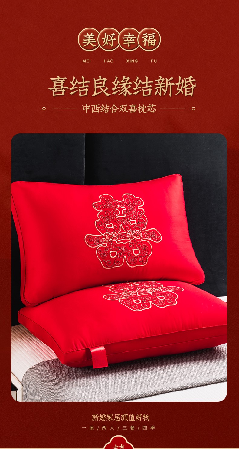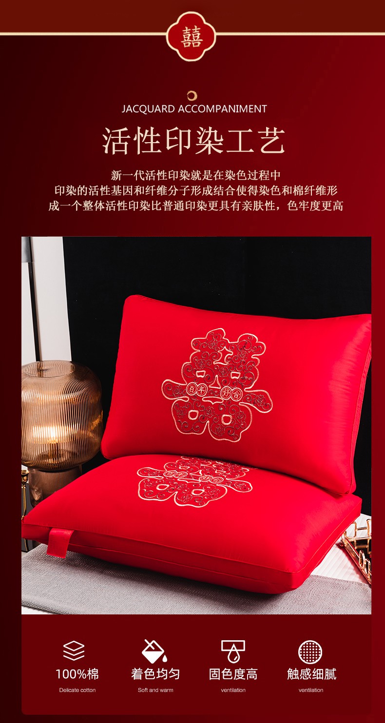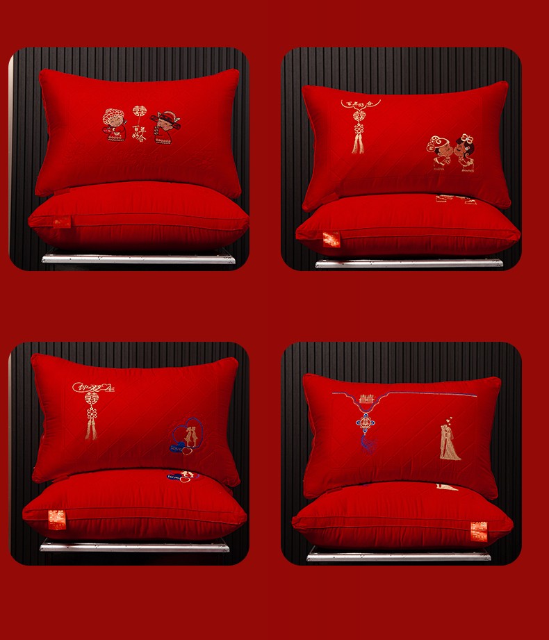 (总) 皇冠之家 2024新款全棉大红喜庆枕头枕芯48*74cm