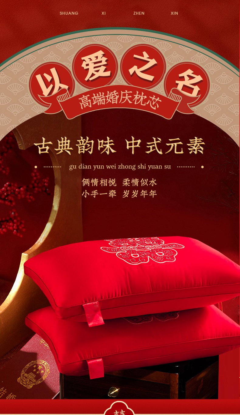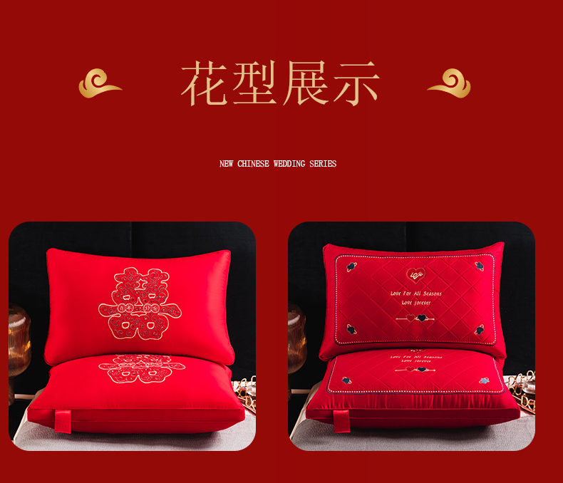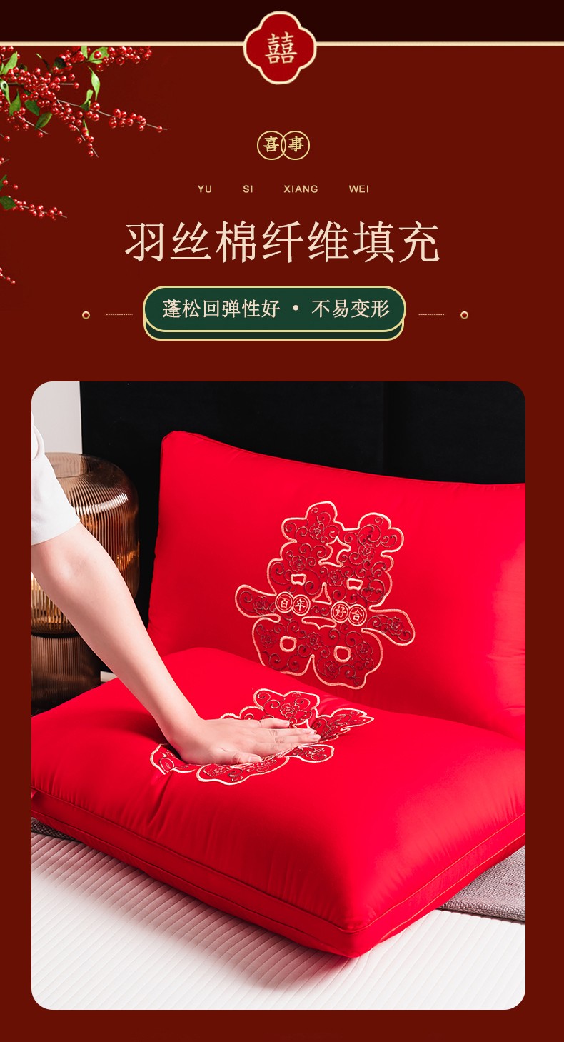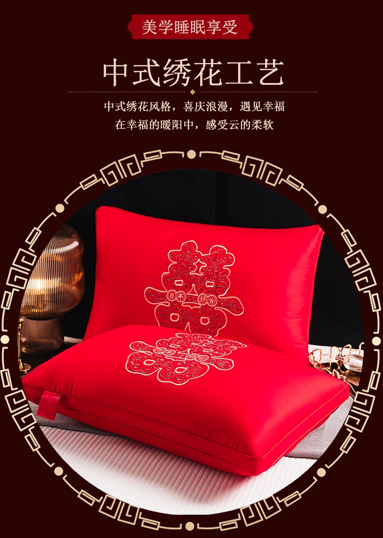 (总) 皇冠之家 2024新款全棉大红喜庆枕头枕芯48*74cm