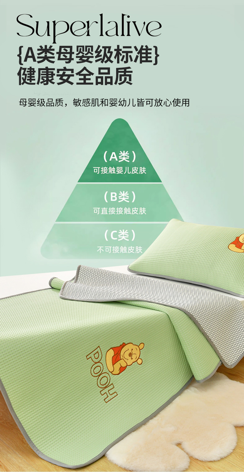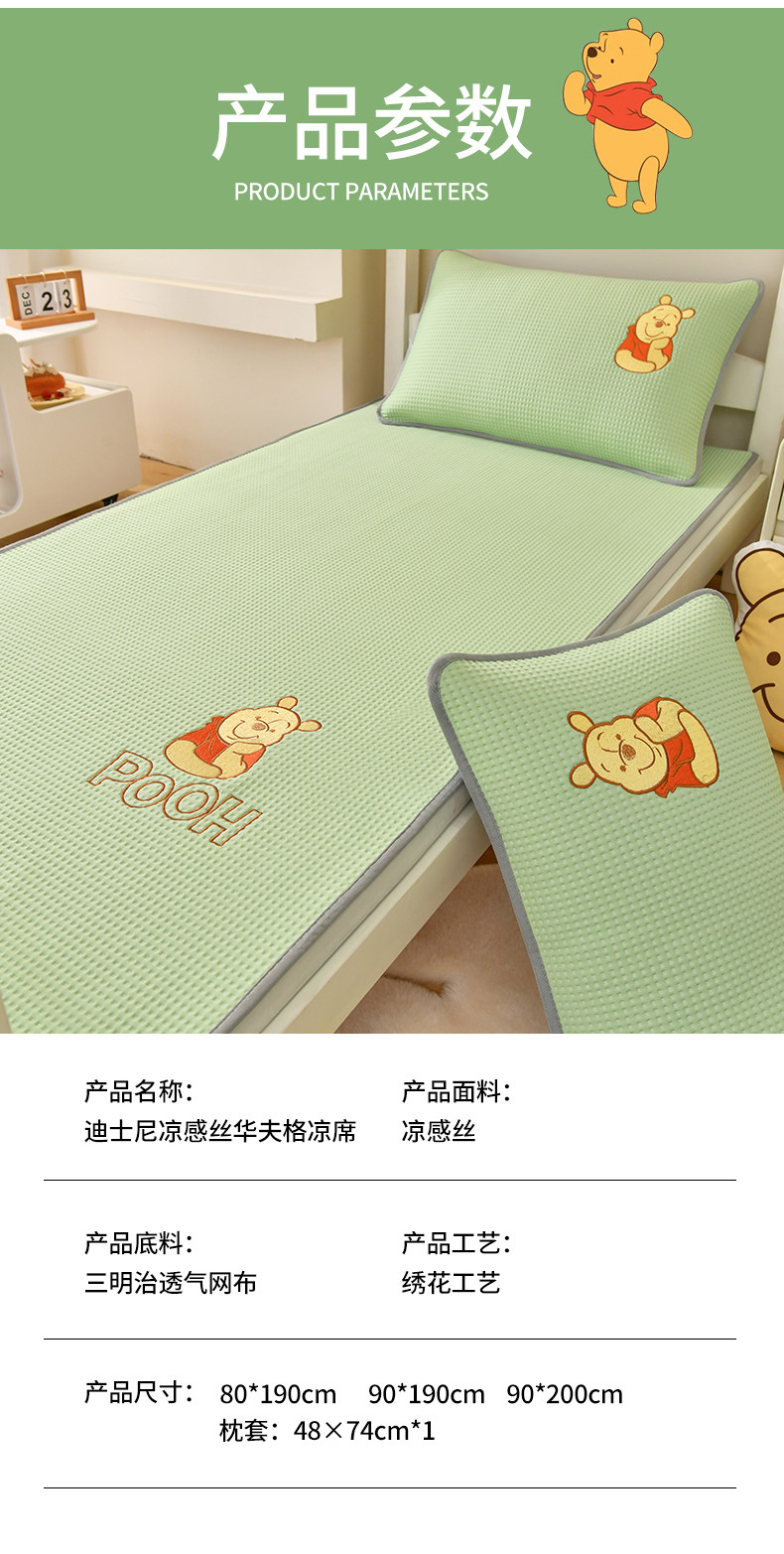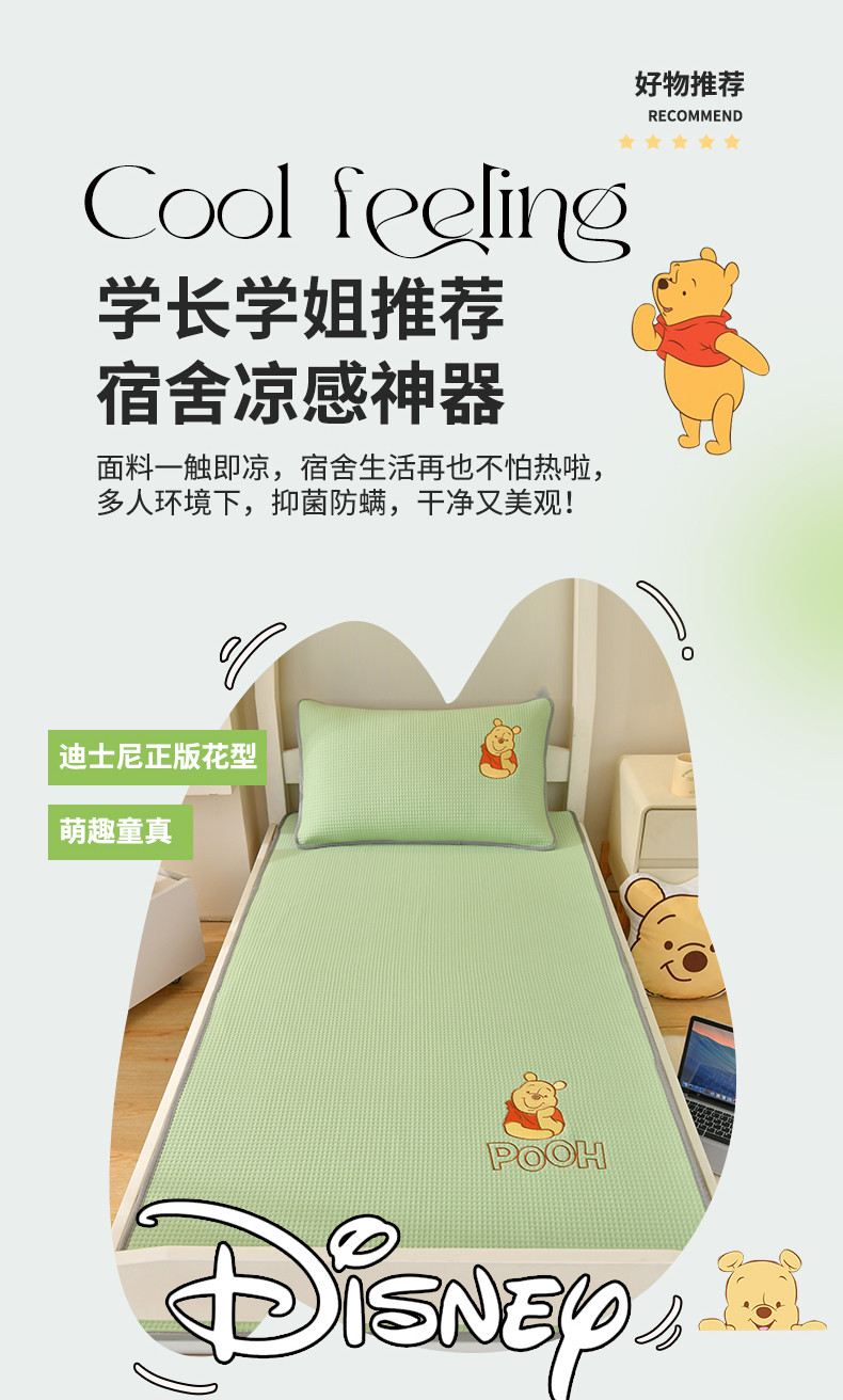 商品名称:鑫钰 2023新款中分子凉感华夫格复合学生宿舍专用上下铺凉席床席 迪士尼-小熊维尼