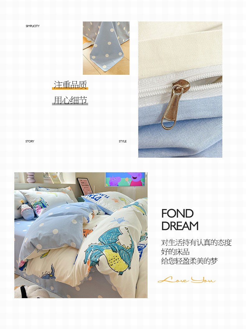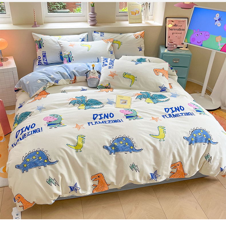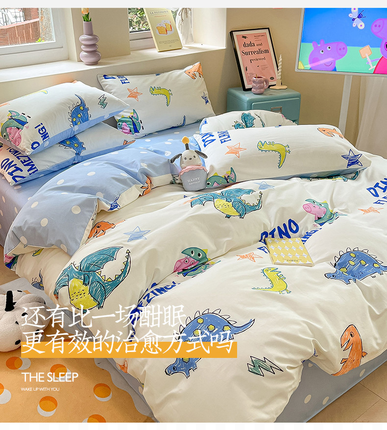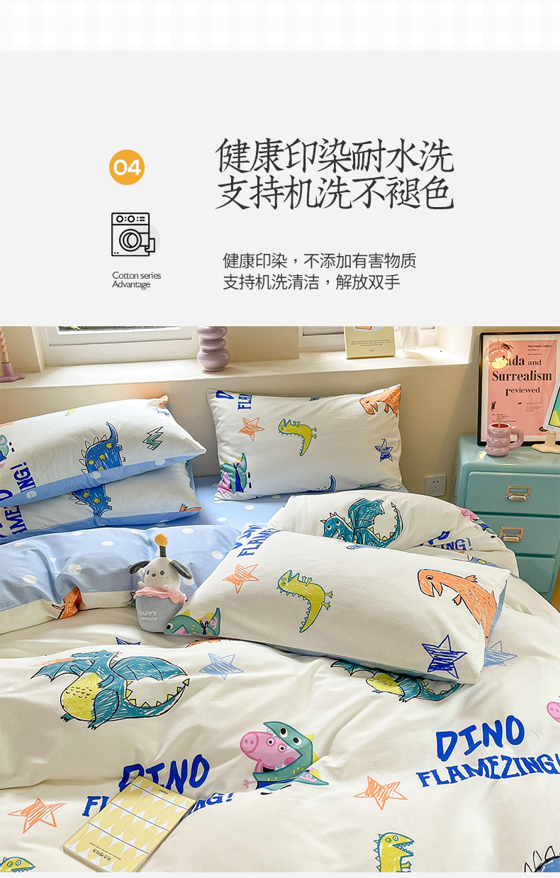 商品名称:桃子家居 2023新款小猪佩奇正版授权纯棉印花系列四件套 小猪佩奇-恐龙佩奇