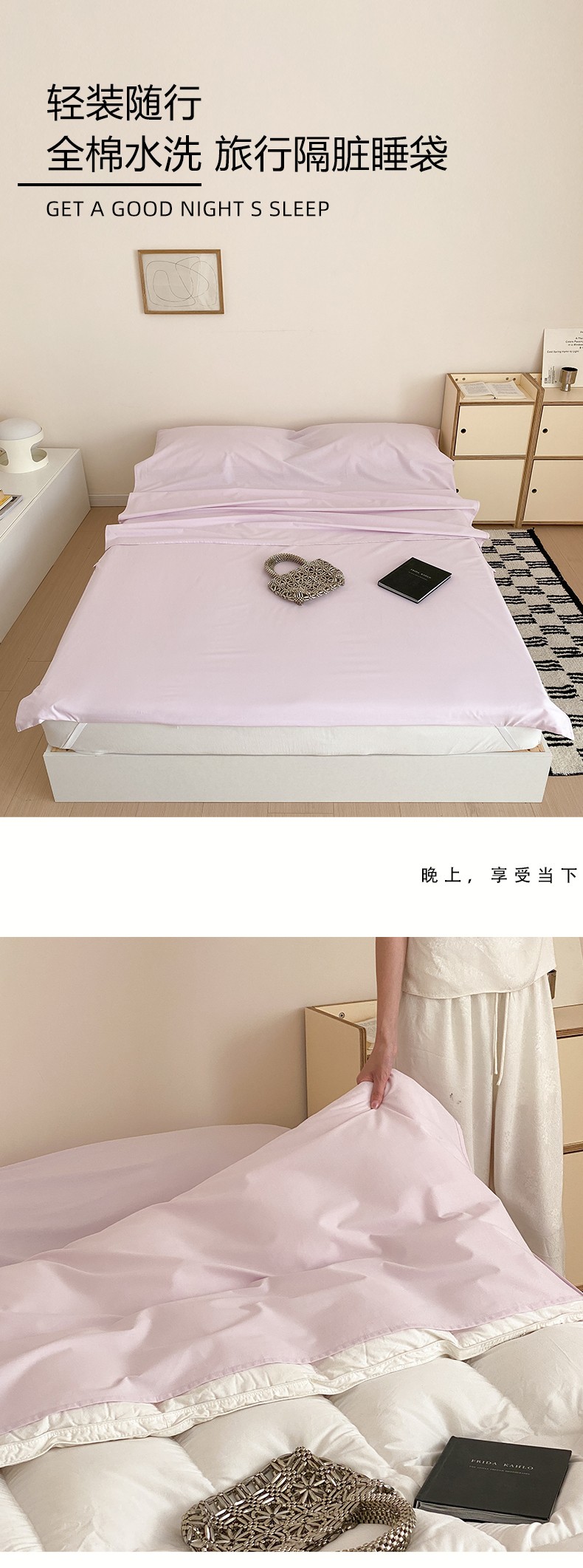 商品名称:Mr.pig猪先生水洗棉 2023新款纯色隔脏睡袋 睡袋-薇薇紫