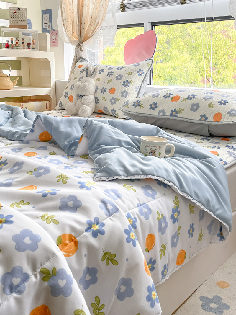 当前位置: 91家纺网 > 商品网购 > 床上用品 > 凉席 > 凉席套件 > 慕尚 2025新款乳胶凉席水洗棉夏被三件套四件套 橘子小花