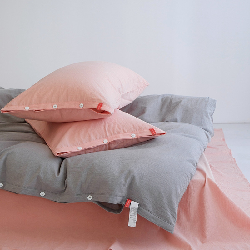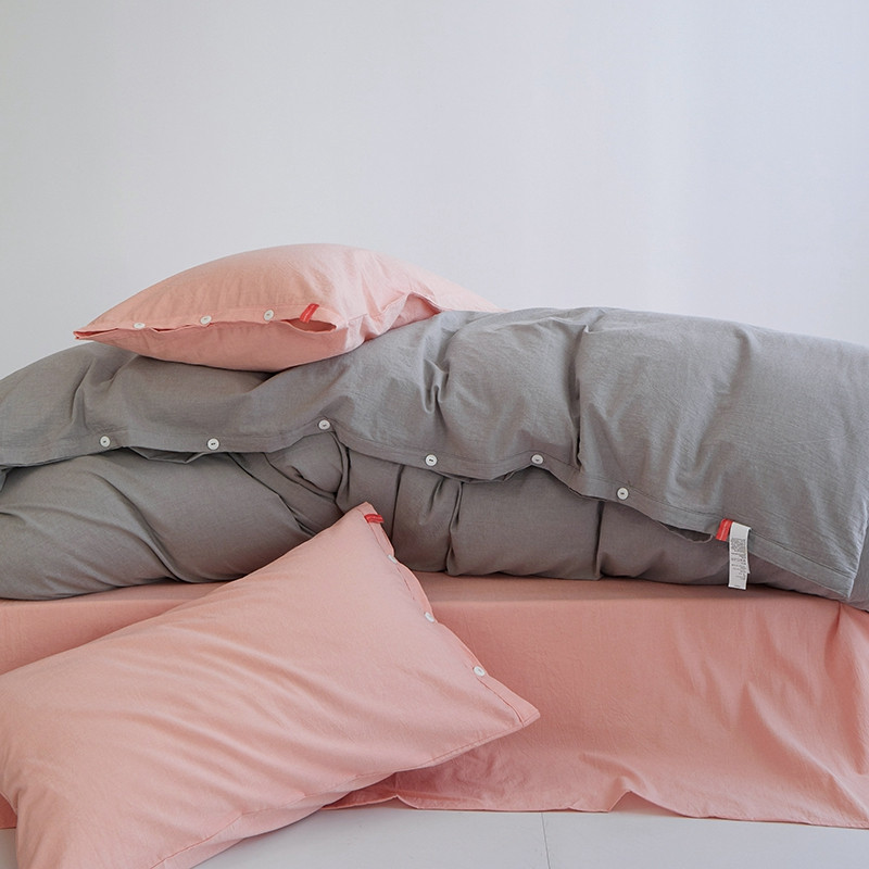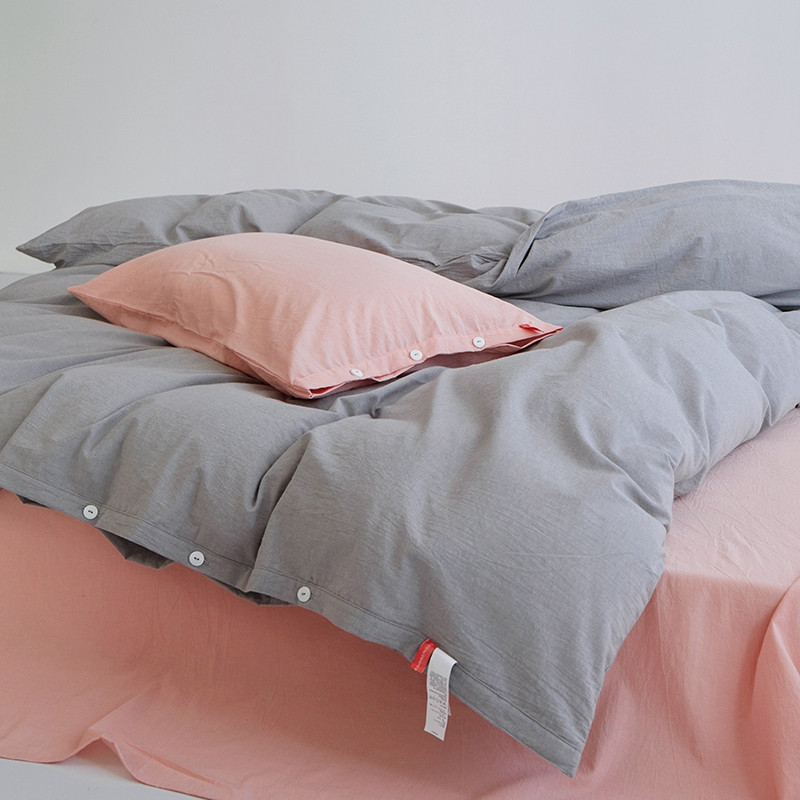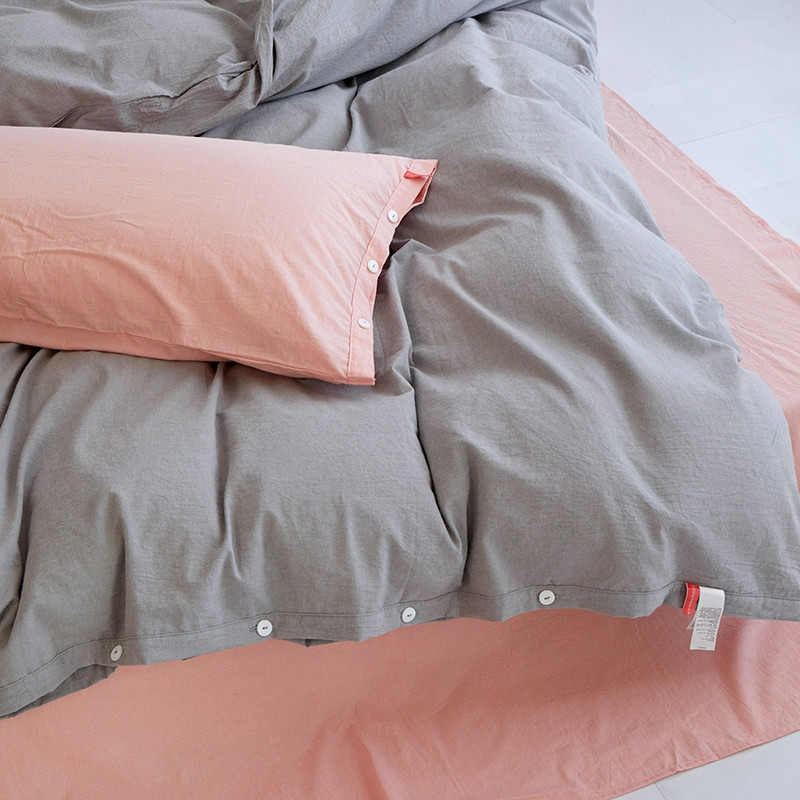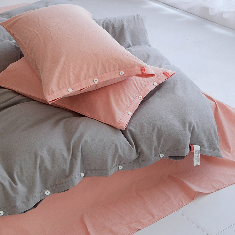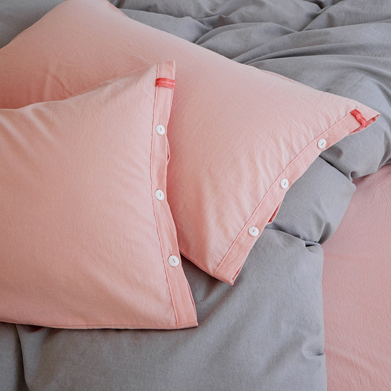 当前位置: 91家纺网 > 商品网购 > 床品套件 > 四件套 > 水洗棉四件套 > 安莱生活水洗棉全棉色经色纬高支高密纽扣款工艺混搭拼色四件套(系列二) 银灰+嫩粉(嫩粉嫩粉)