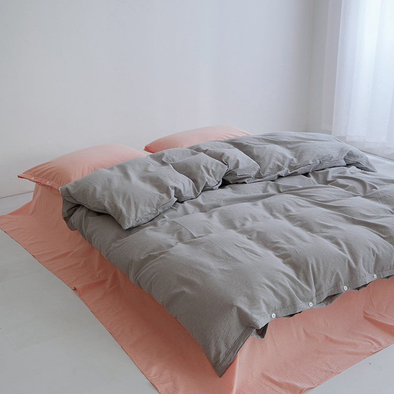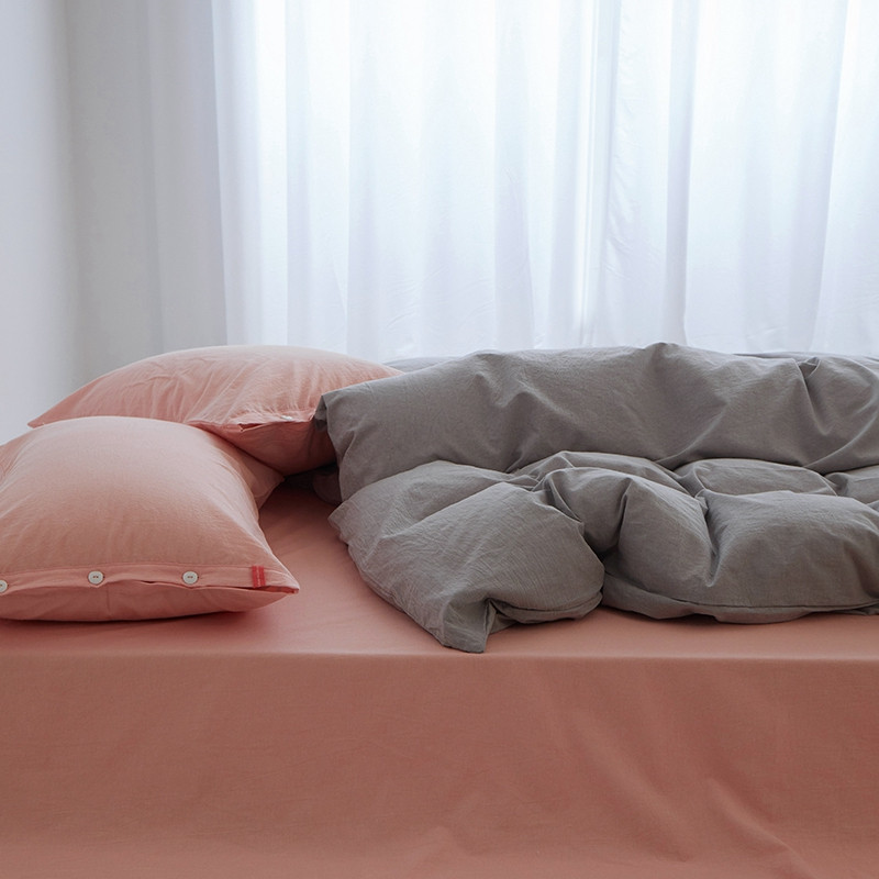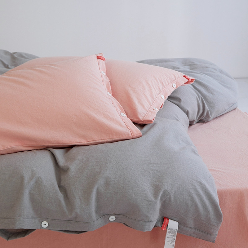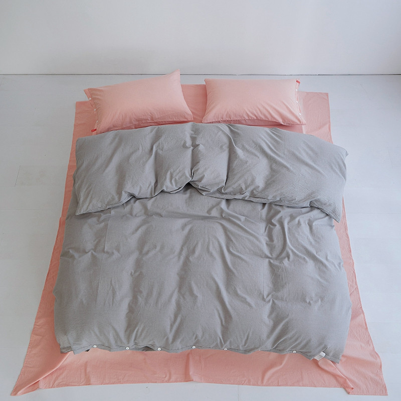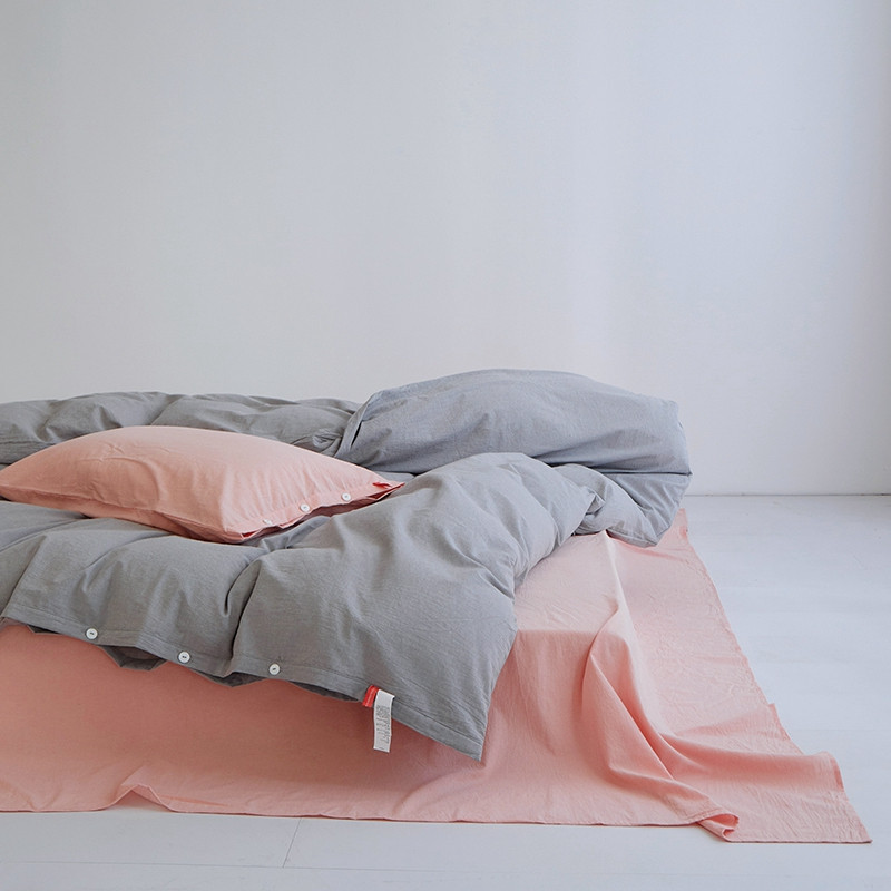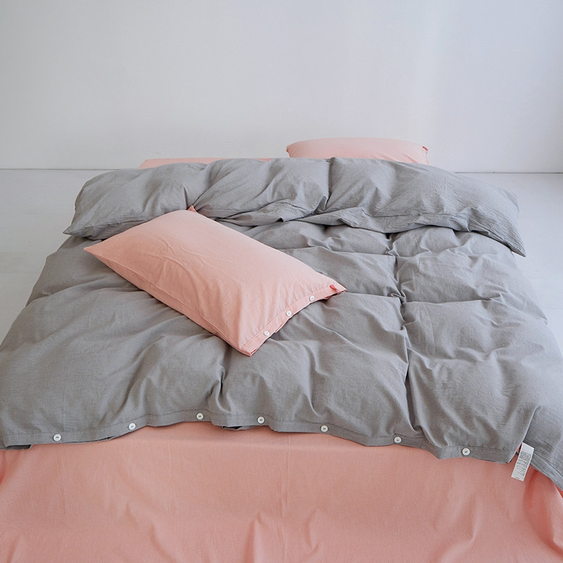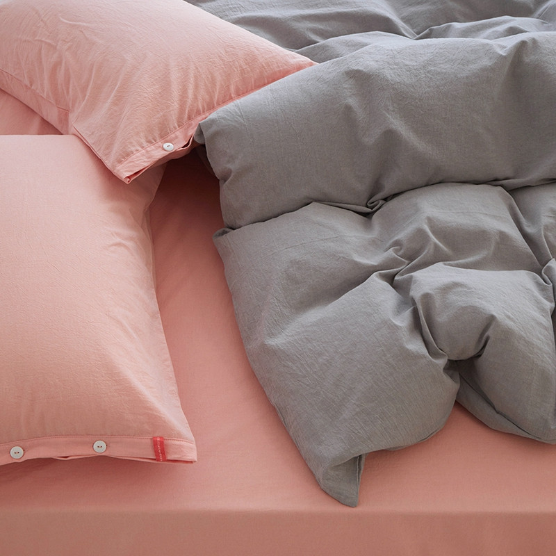 当前位置: 91家纺网 > 商品网购 > 床品套件 > 四件套 > 水洗棉四件套 > 安莱生活水洗棉全棉色经色纬高支高密纽扣款工艺混搭拼色四件套(系列二) 银灰+嫩粉(嫩粉嫩粉)