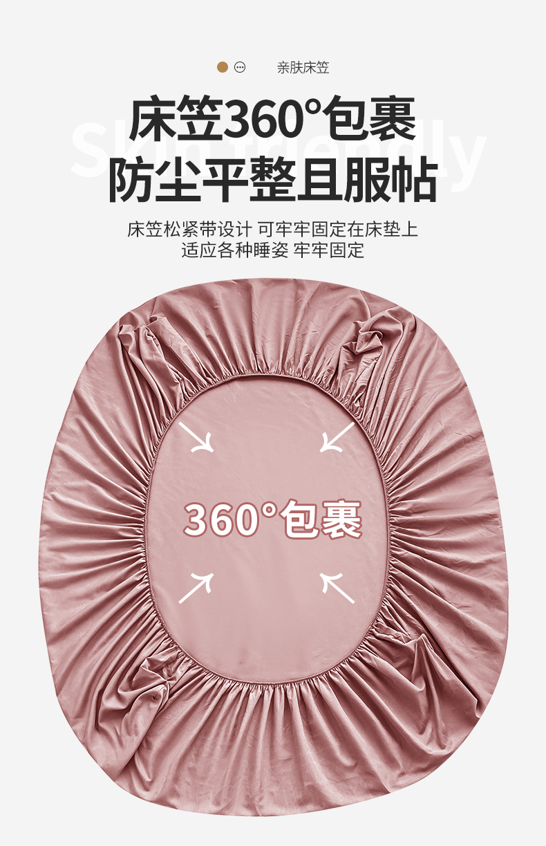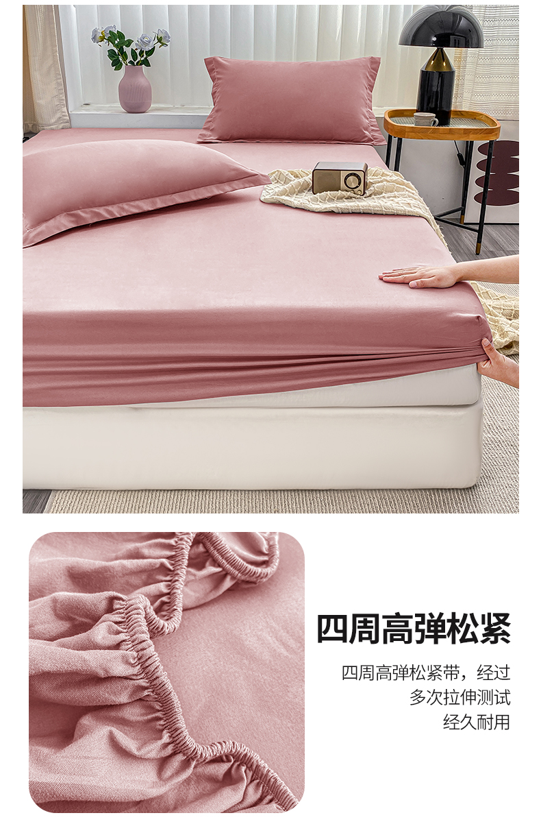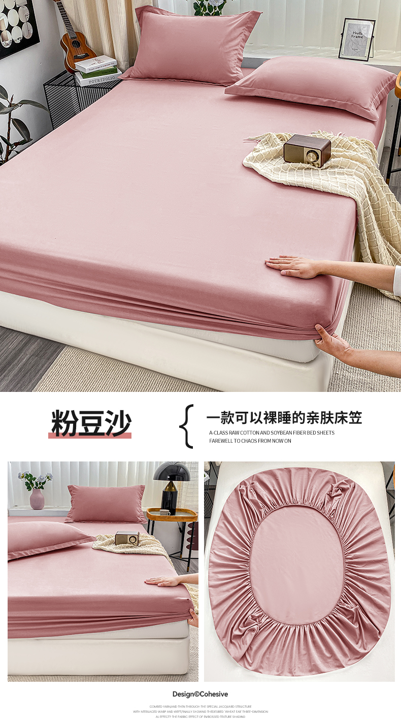 • 91家纺网 家纺一手货源 找家纺 恬澳家纺 2024新款实拍风单床笠 粉豆沙