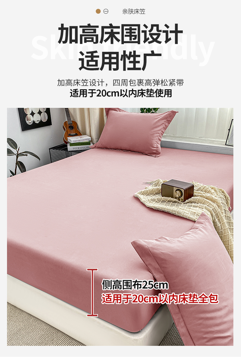恬澳家纺 2024新款实拍风单床笠 粉豆沙