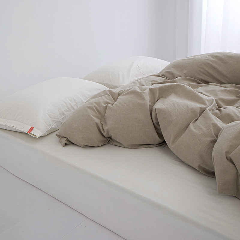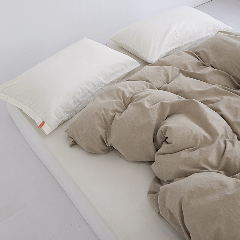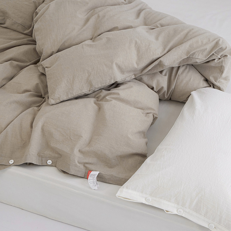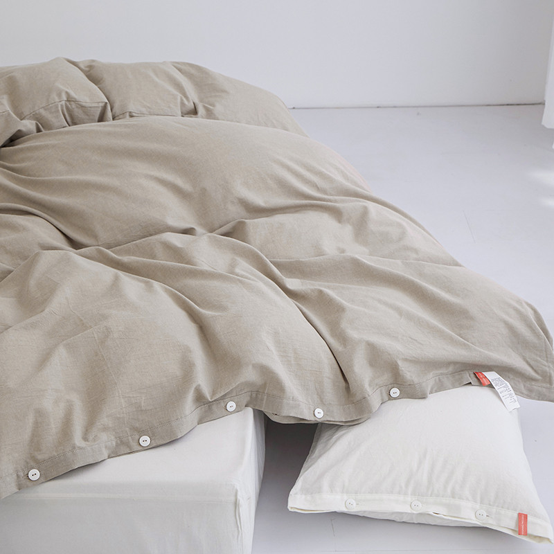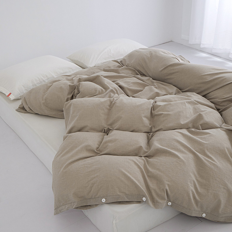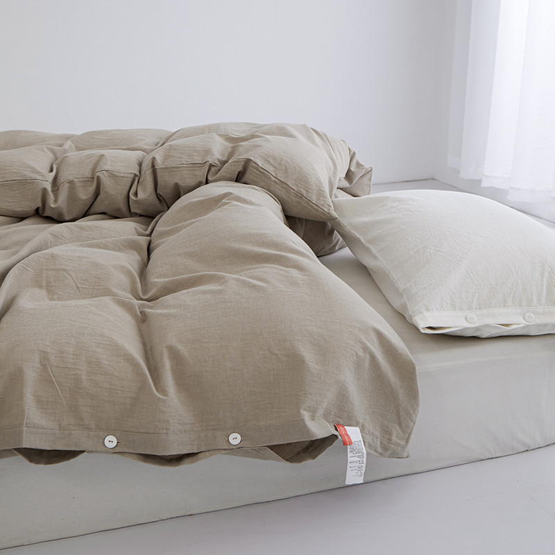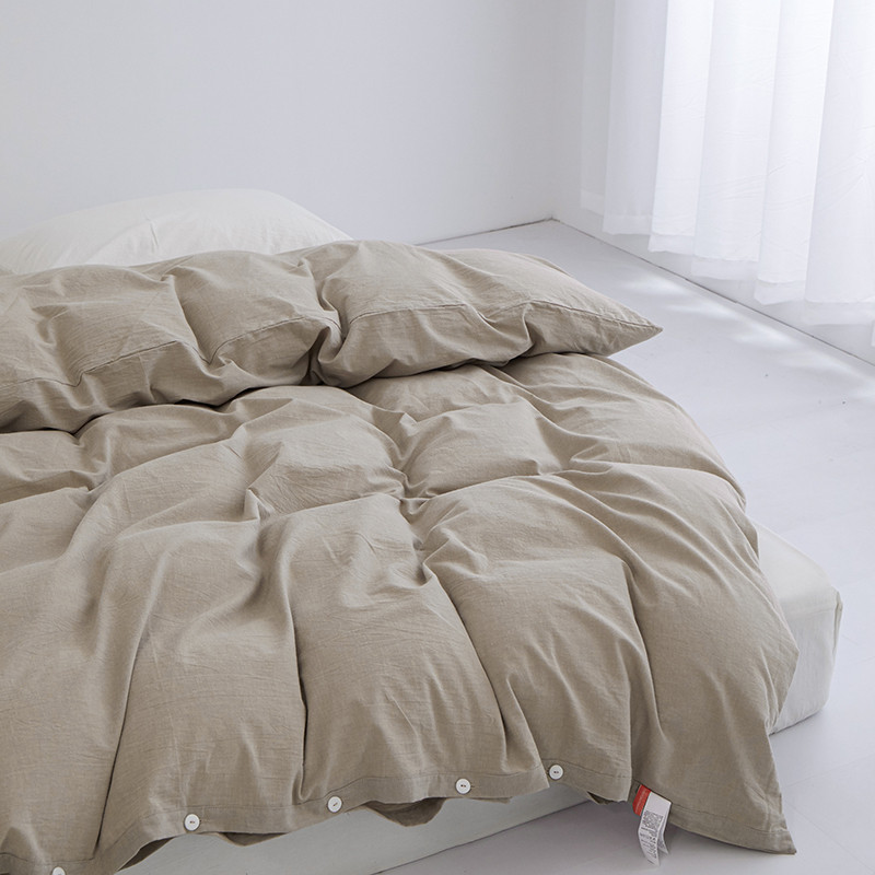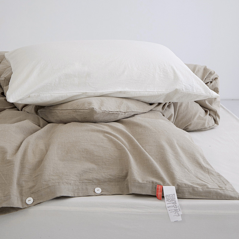 商品名称:安莱生活 2023新款水洗棉全棉色织高支高密纽扣款工艺单品被套 卡其