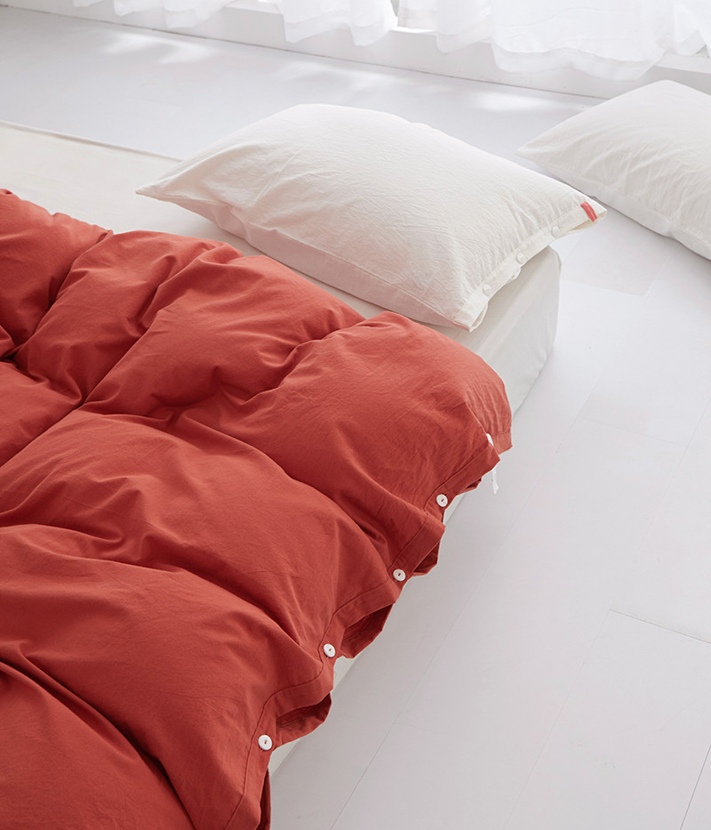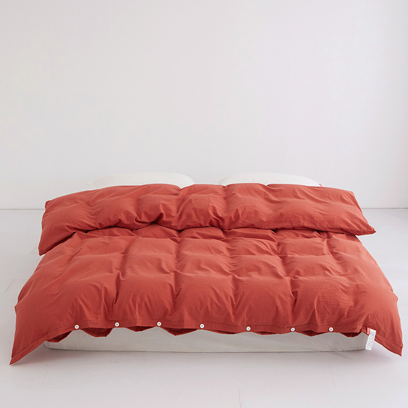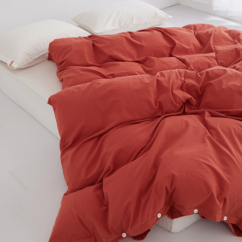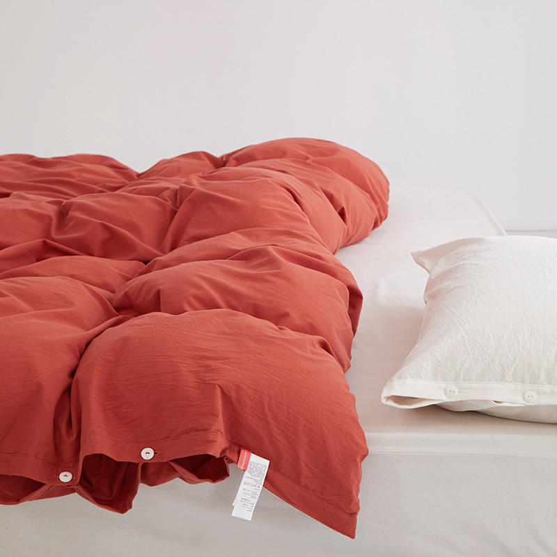 商品名称:安莱生活 2023新款水洗棉全棉色织高支高密纽扣款工艺单品被套 砖红