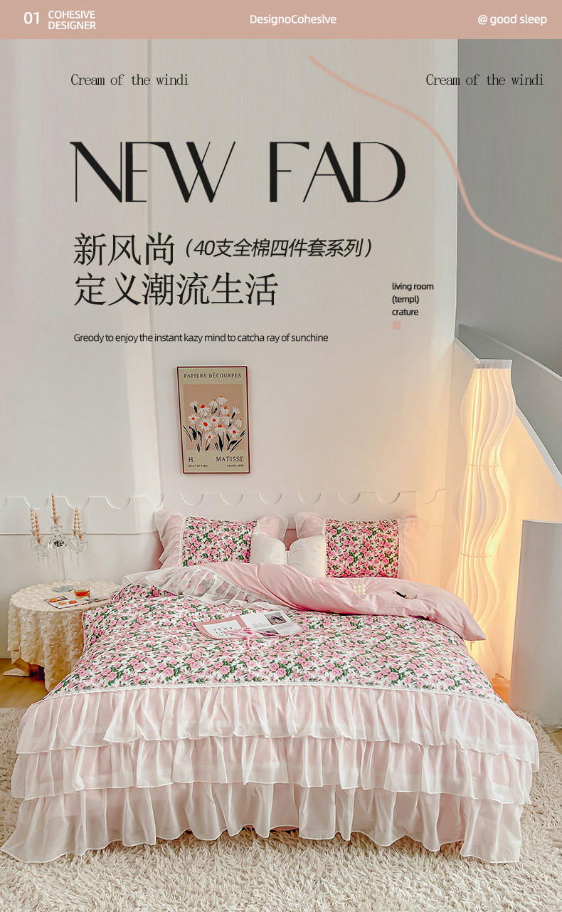 (总)潮邦创意家居2025新款13372全棉法式工艺款四件套学生三件套