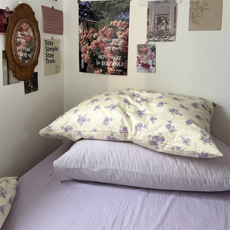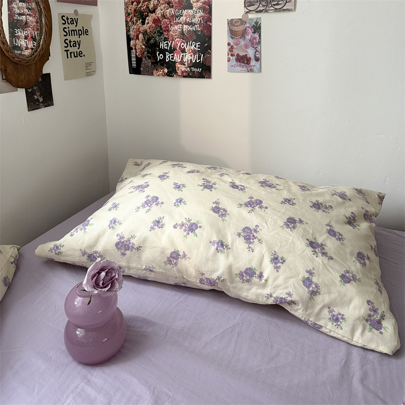(总)恋恋三季 2024新款纯棉印花韩式田园枕套-格子铃兰,格子铃兰一只,香芋紫一只