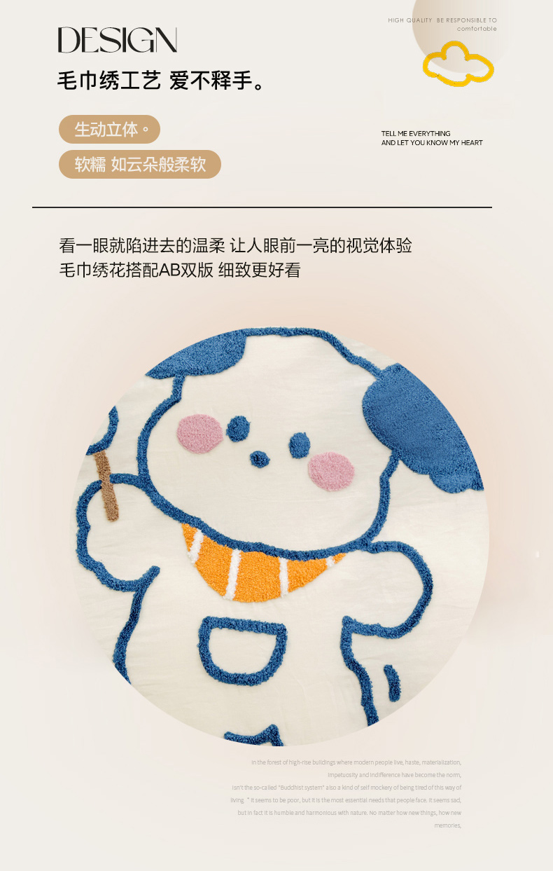 商品名称:丽涵 2023新款全棉毛巾绣花卡通四件套三件套 小狗吹泡泡-天蓝