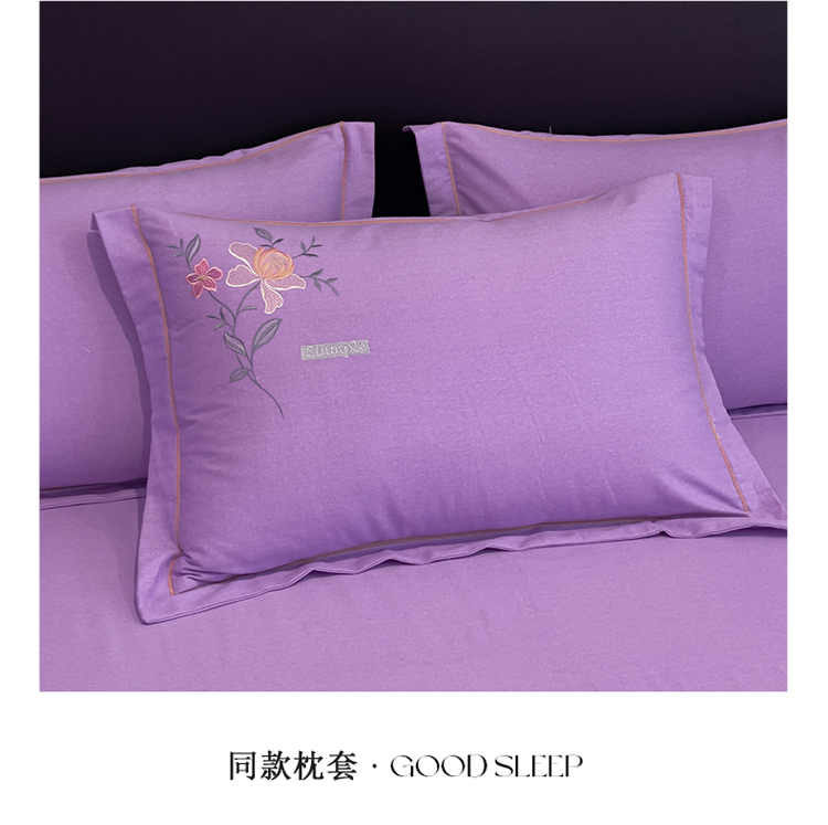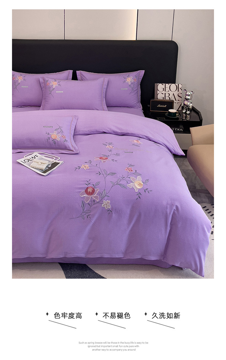 商品名称:云锦2023秋冬新品全棉磨毛绣花四件套缦芯 缦芯紫
