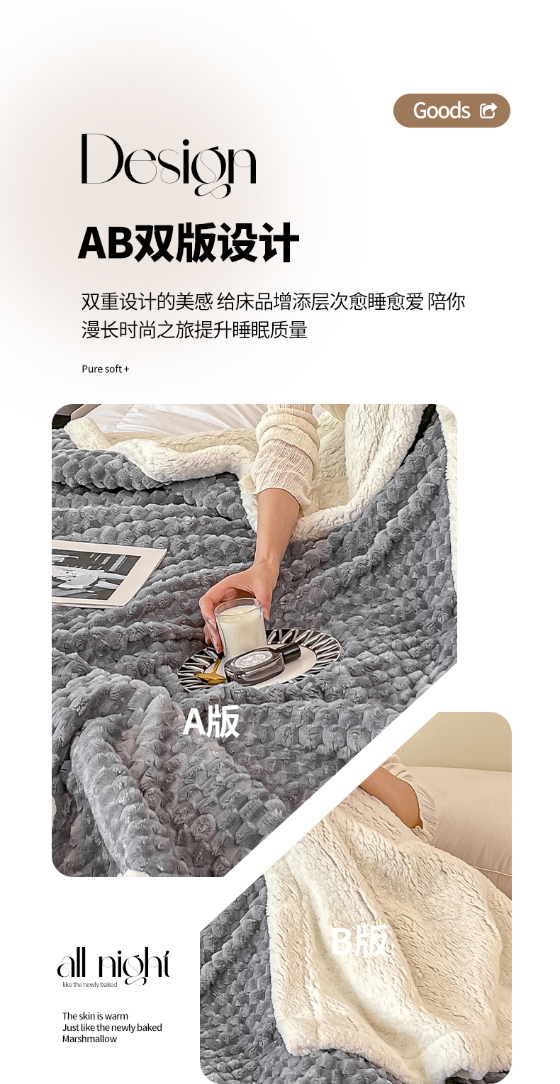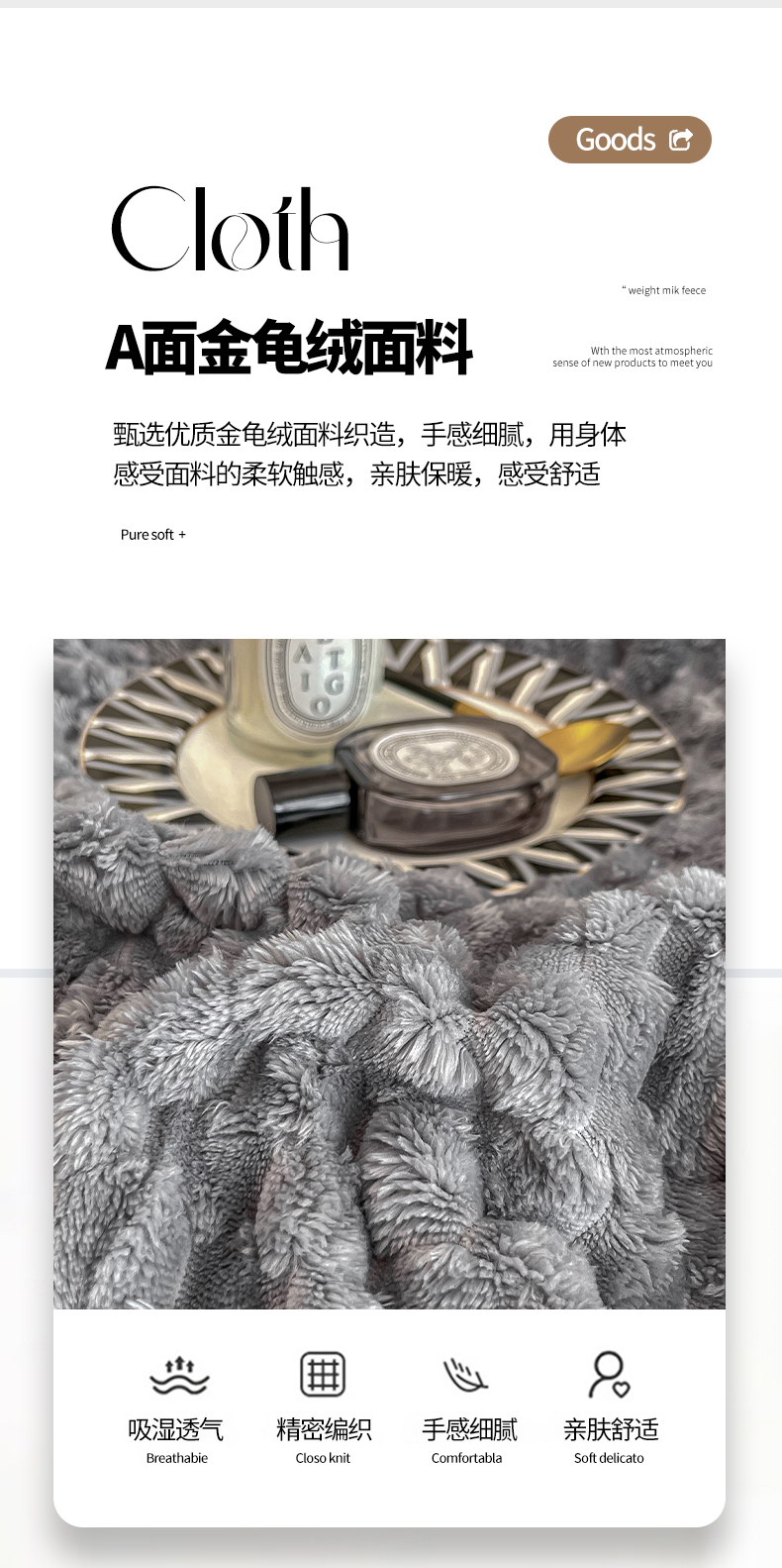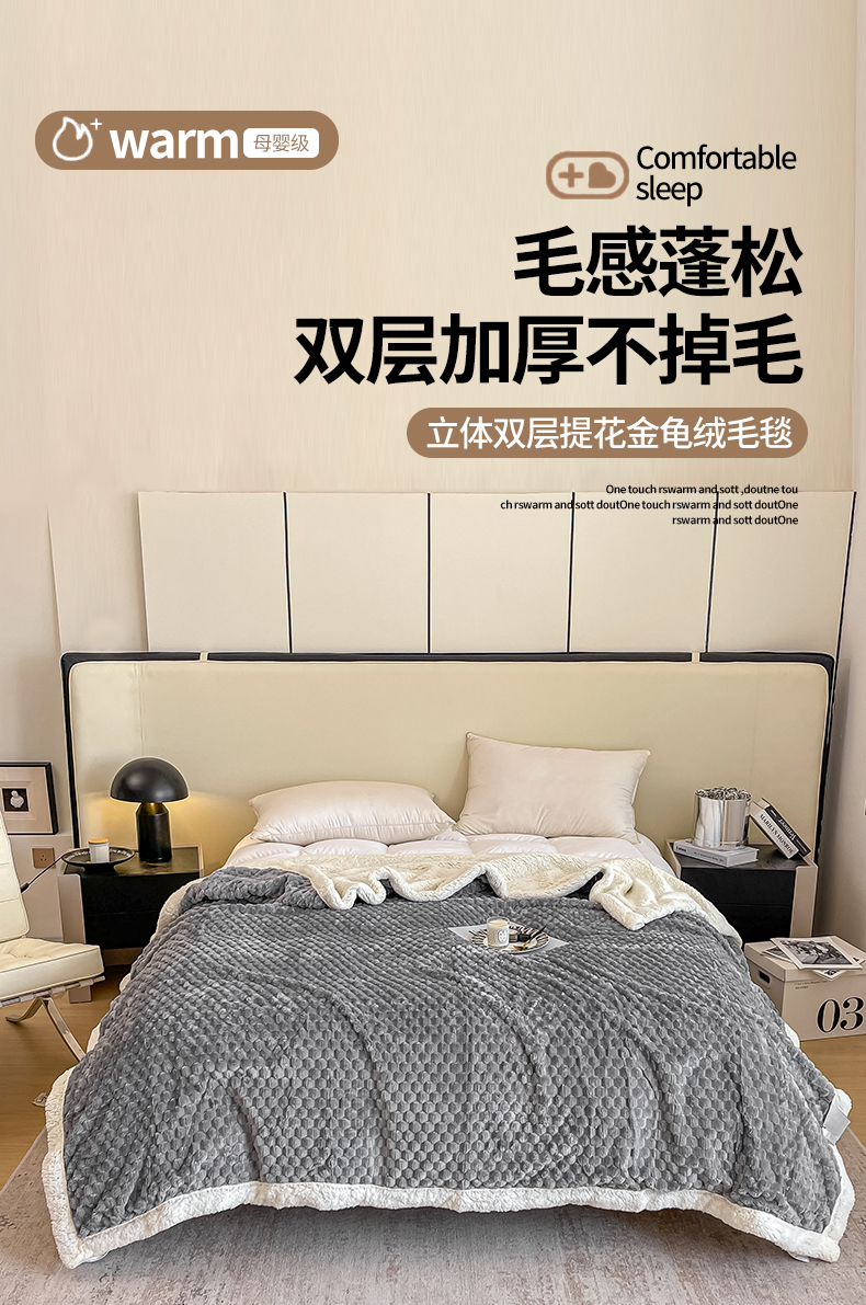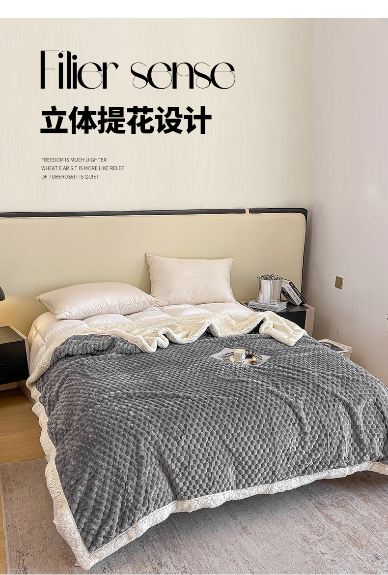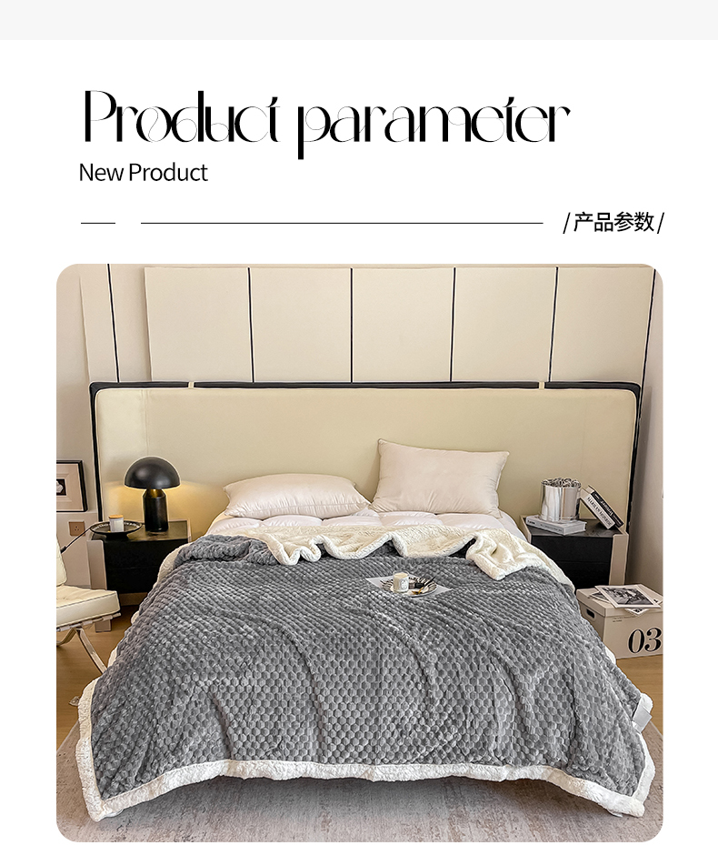 商品名称:2025新款提花大包边AB版金龟绒羊羔绒舒棉绒双层四季毛毯盖毯 经典灰