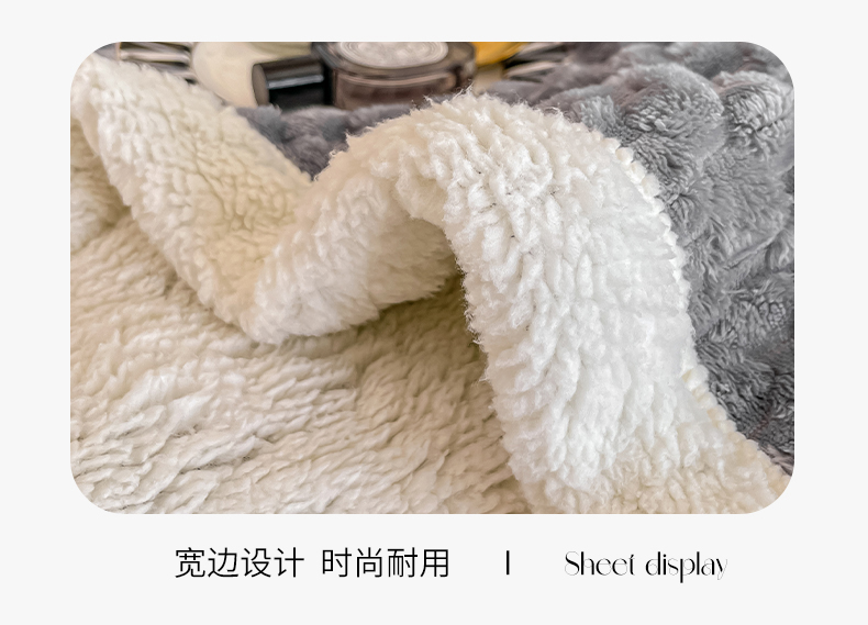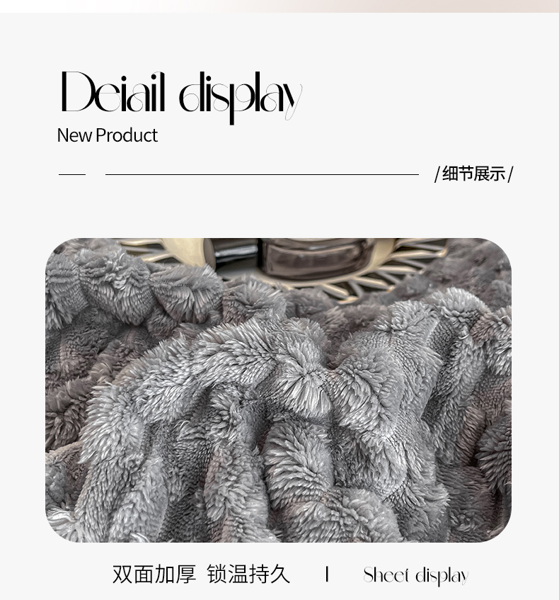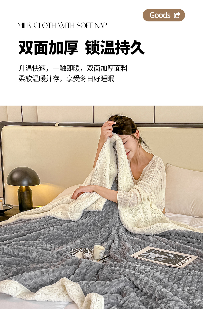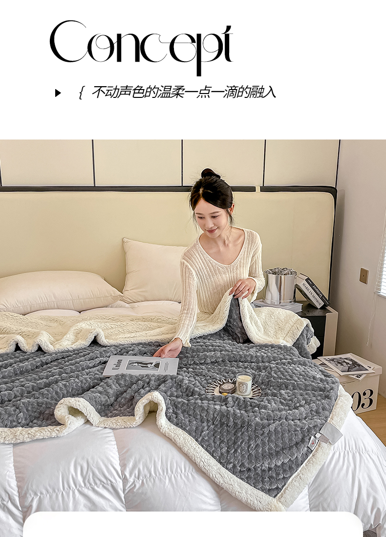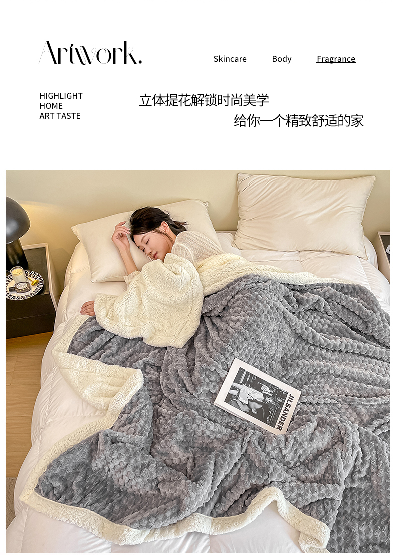商品名称:2025新款提花大包边AB版金龟绒羊羔绒舒棉绒双层四季毛毯盖毯 经典灰