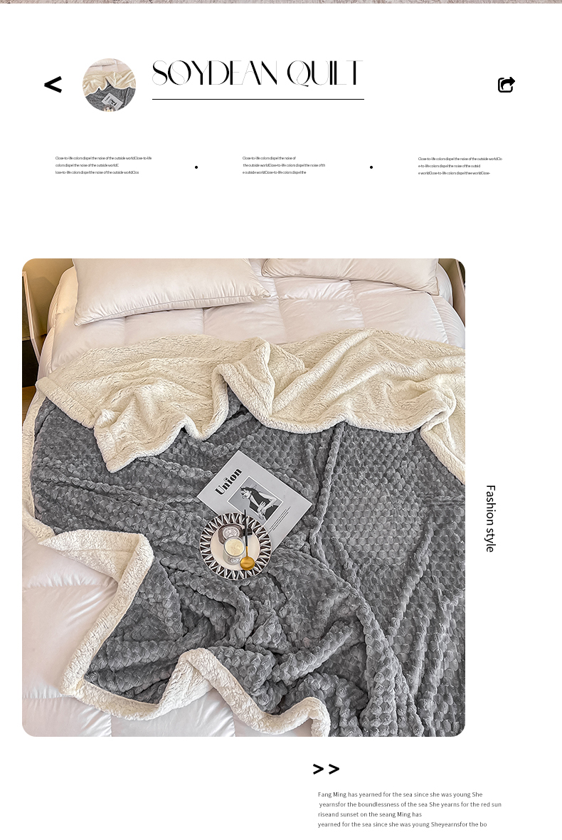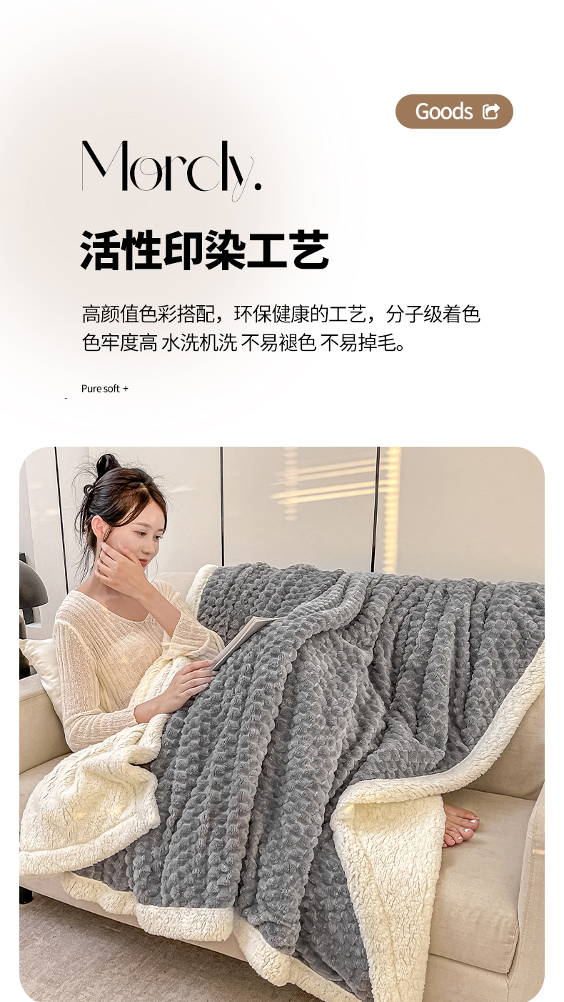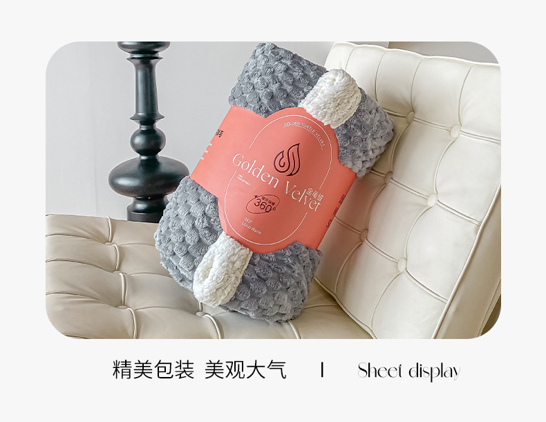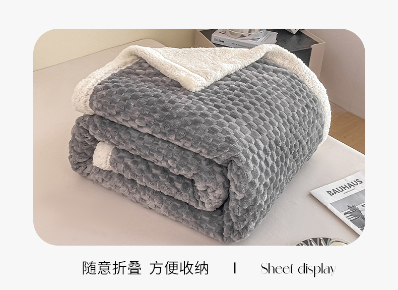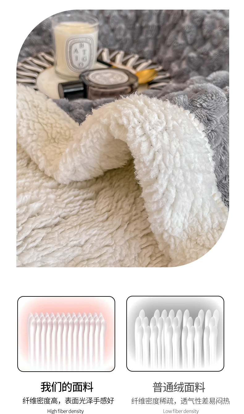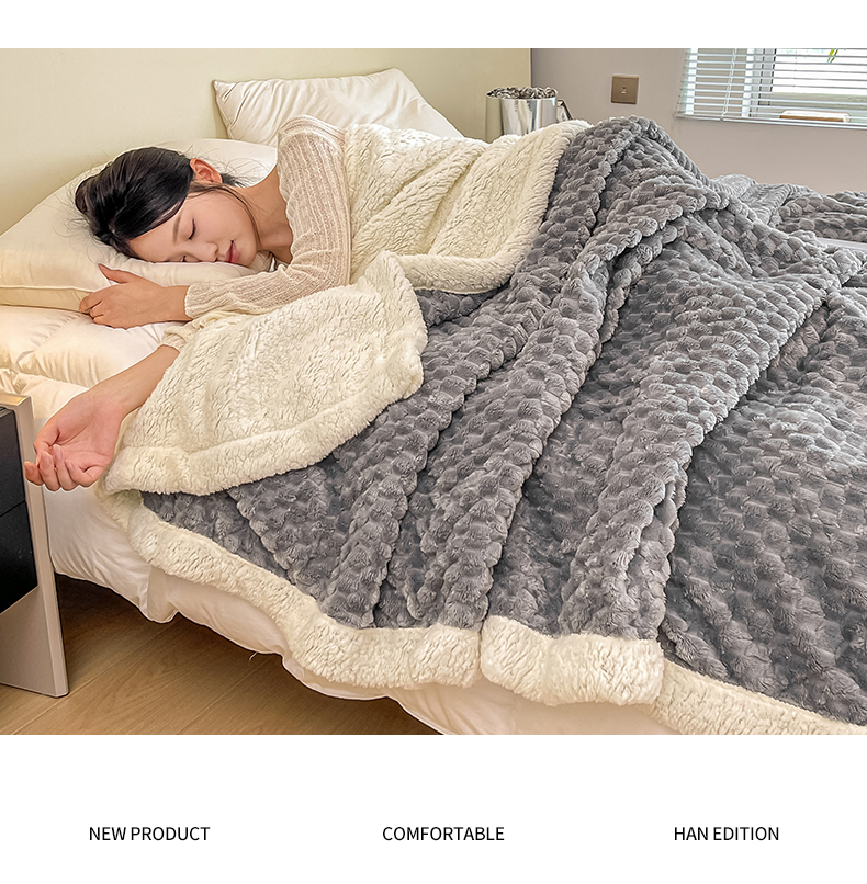 商品名称:2025新款提花大包边AB版金龟绒羊羔绒舒棉绒双层四季毛毯盖毯 经典灰