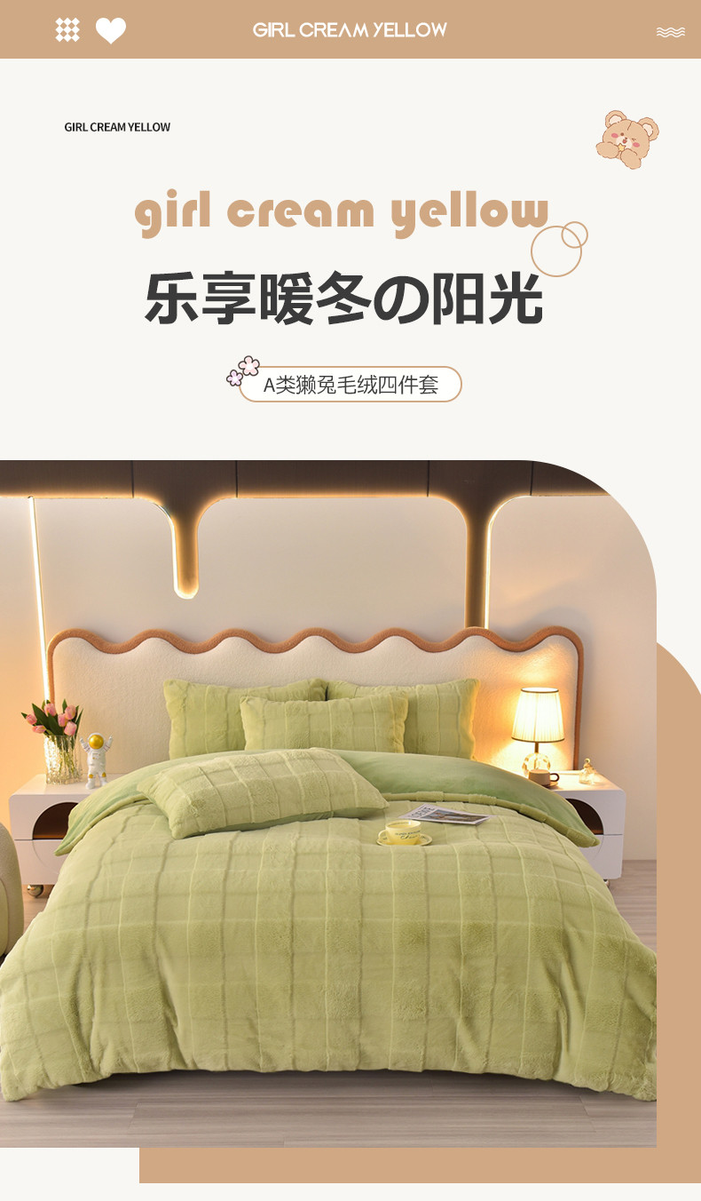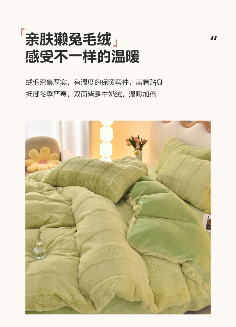商品名称:喜梦缘家纺2025新款直播爆款兔毛绒兔兔绒懒兔绒立体剪花牛奶绒四件套