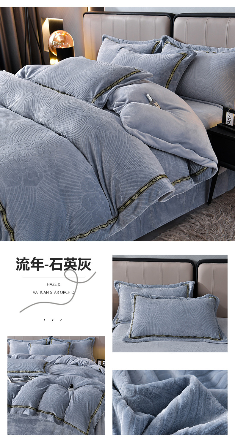商品名称:妮恒美 2023新款牛奶绒雕花压线款四件套 流年-石英灰
