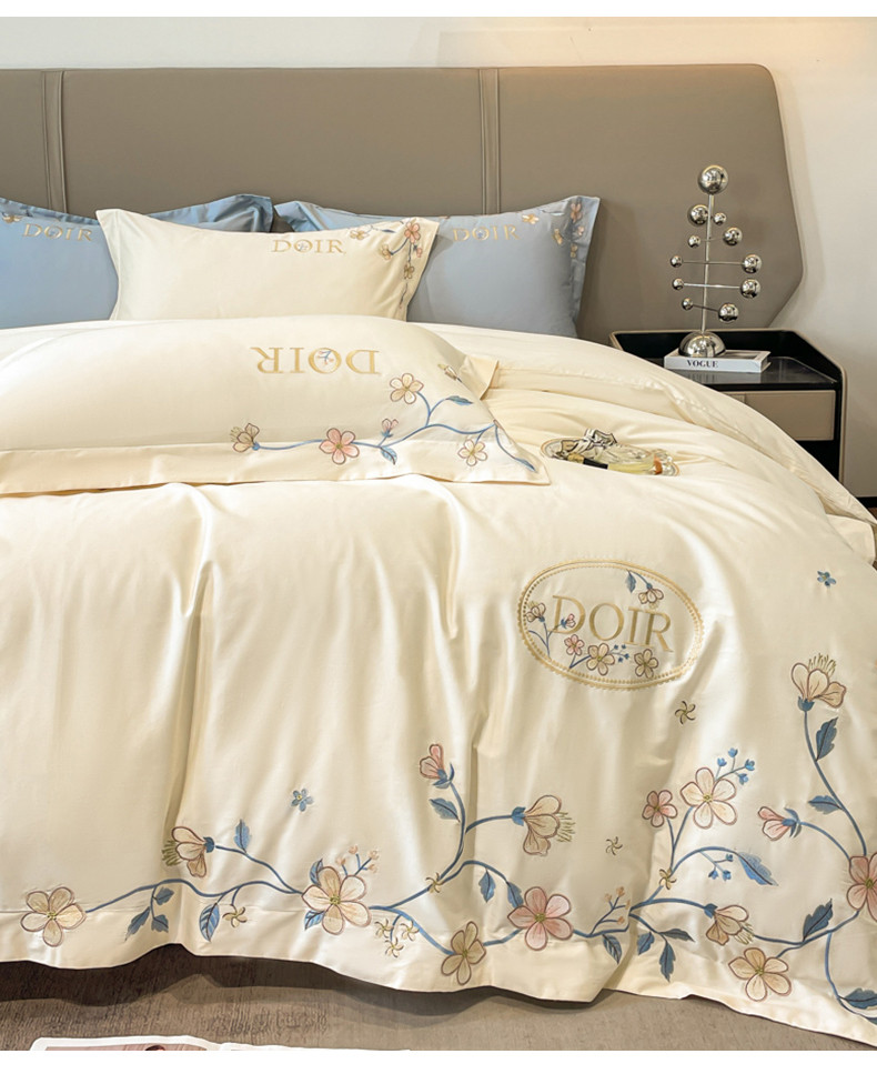 丞音 高档礼盒2024新款长绒棉轻奢纯棉花卉刺绣四件套 香榭丽-奶昔白
