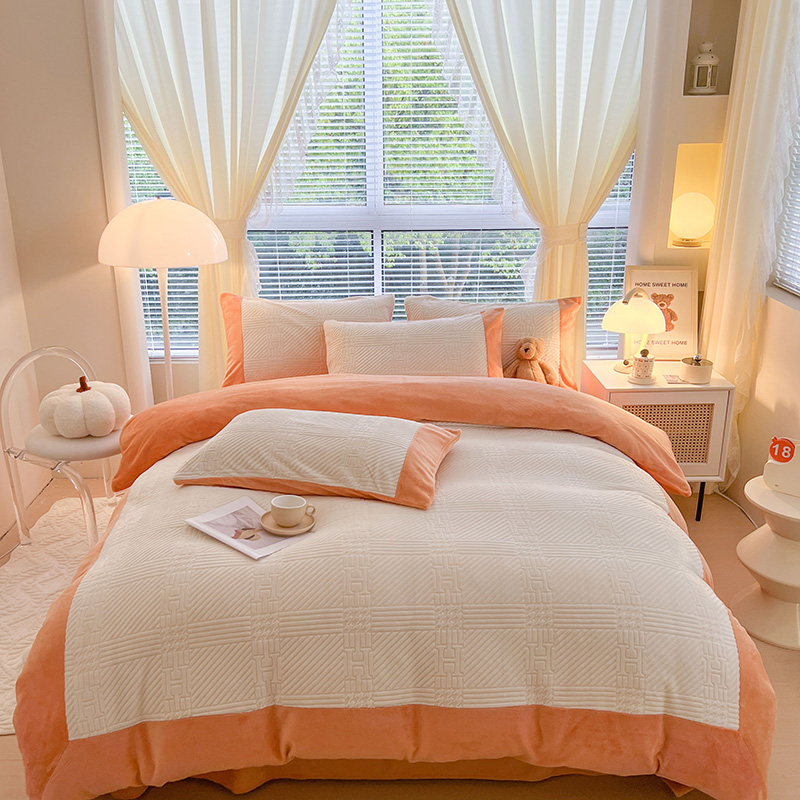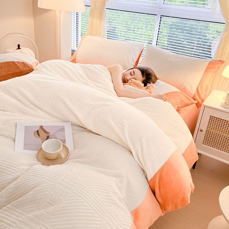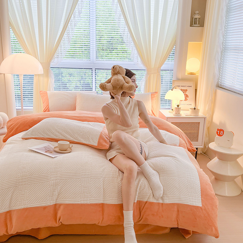 新月家纺(锦威郎) 2024新款秋冬230克海貂绒牛奶绒四件套-艾梵希 艾梵希- 橙