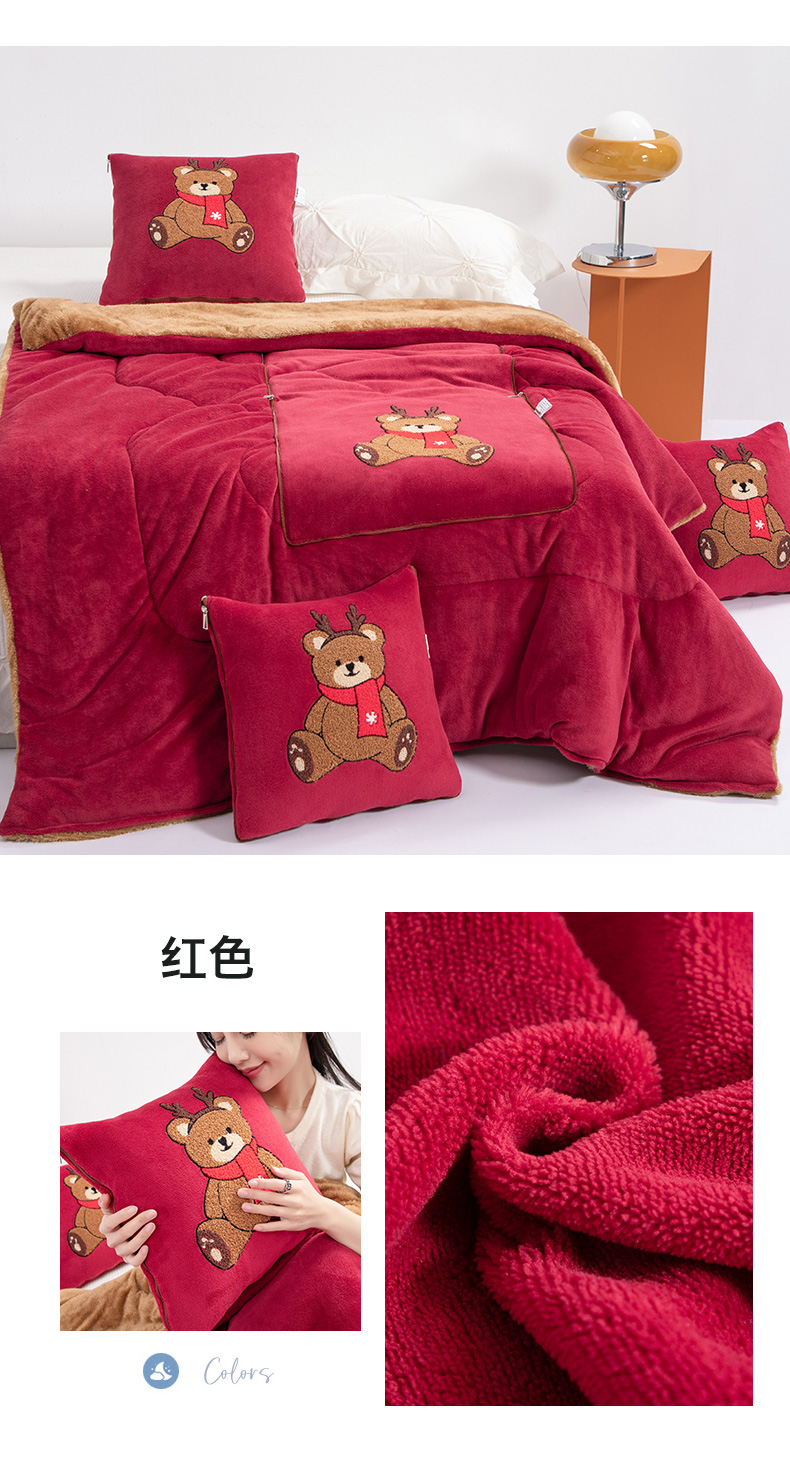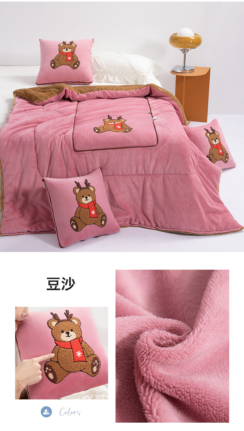 (总)宝马家纺(原梦童画) 2024新款泰迪熊毛巾绣联名款减压式加厚抱枕毯,豆沙粉,粉色,黑色,灰色,绿色,柠檬黄,天空蓝