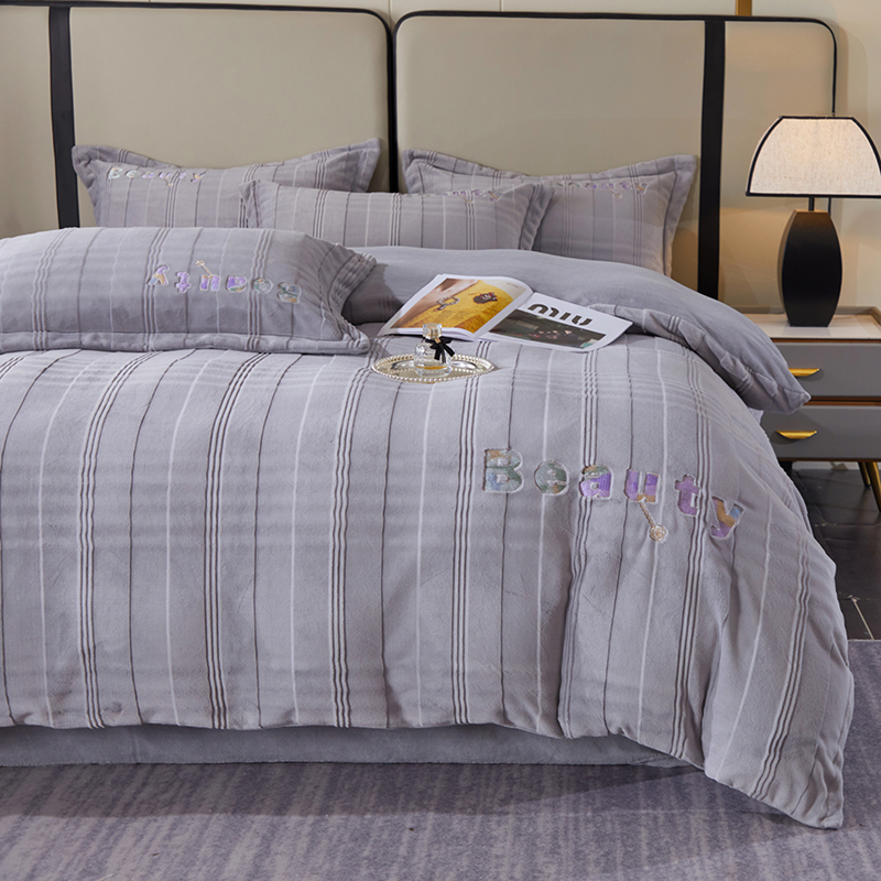 新款牛奶绒绣花款四件套系列 清仓价! 灰色
