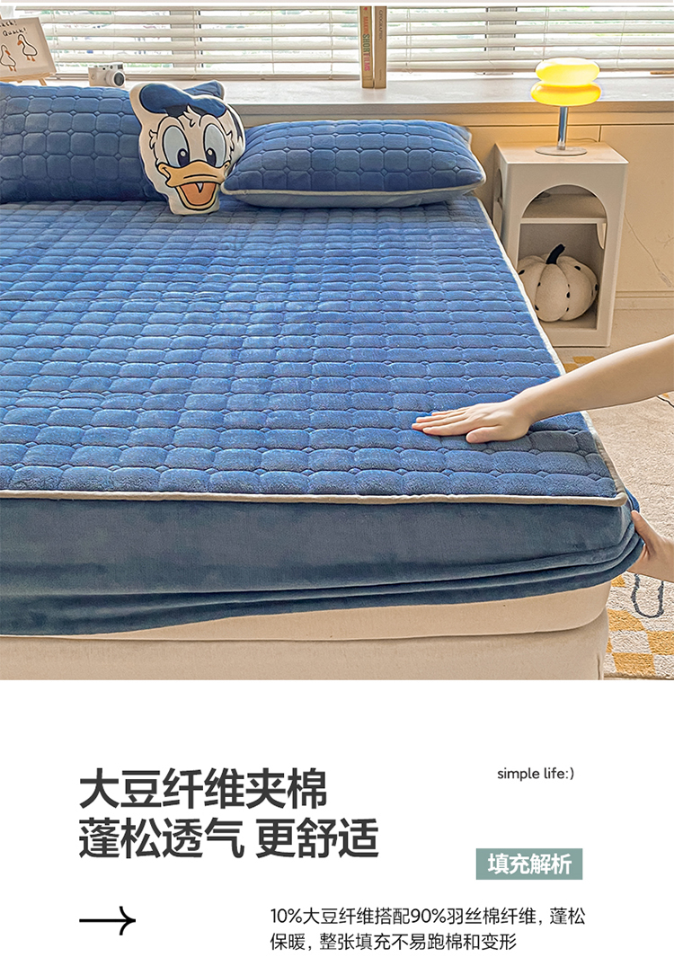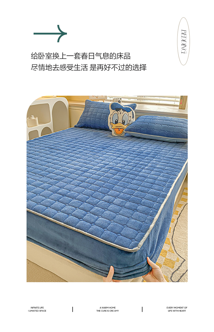 商品名称:卡伦家纺 2025新款A类牛奶绒大豆纤维抗菌夹棉床笠 宝石蓝