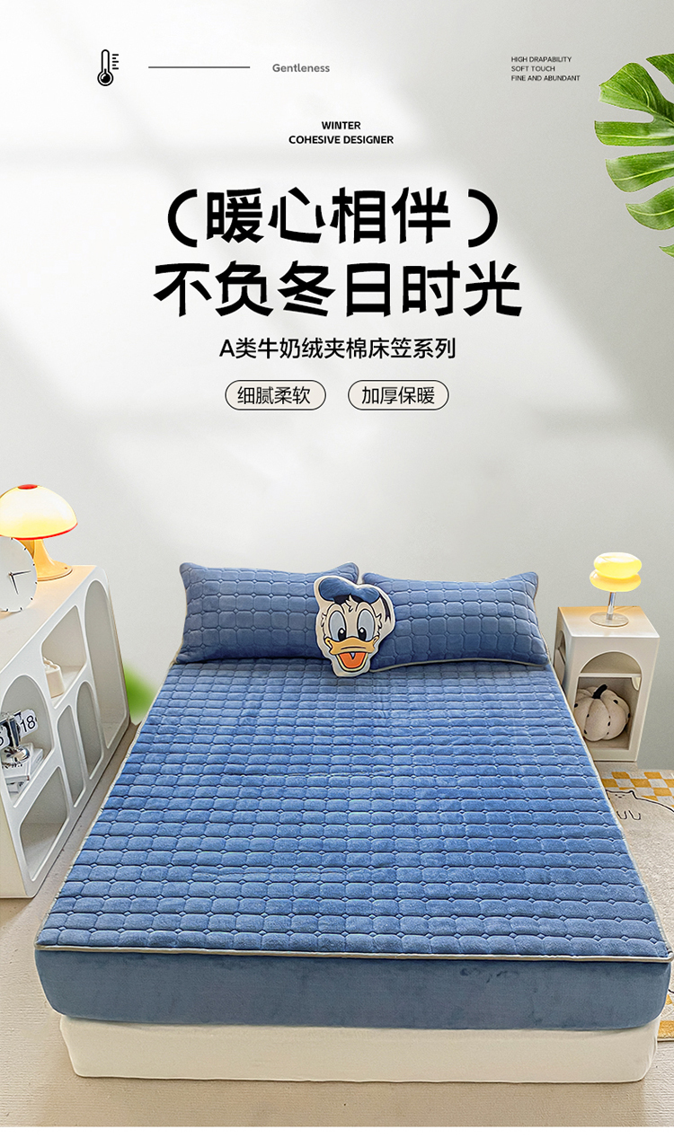 卡伦家纺 2025新款A类牛奶绒大豆纤维抗菌夹棉床笠 宝石蓝