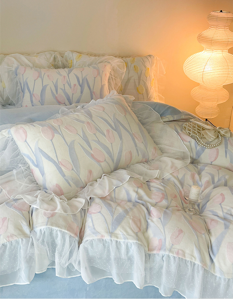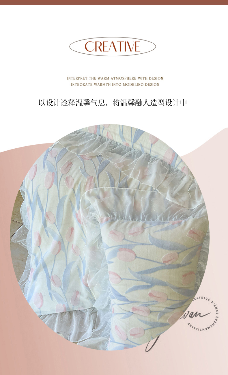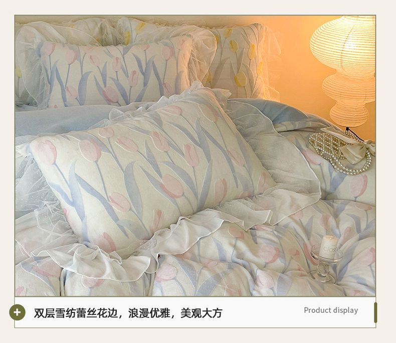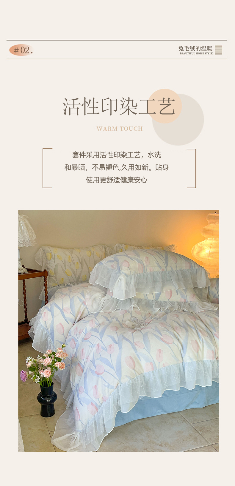 商品名称:玛奇朵2023新款秋冬新品5D立体雕花牛奶绒四件套 郁金香-蓝