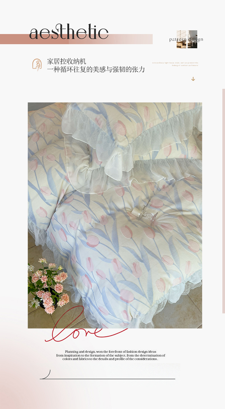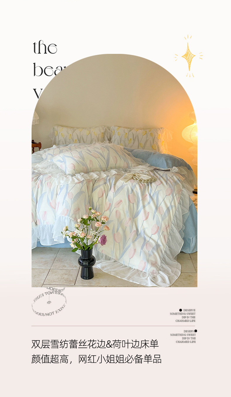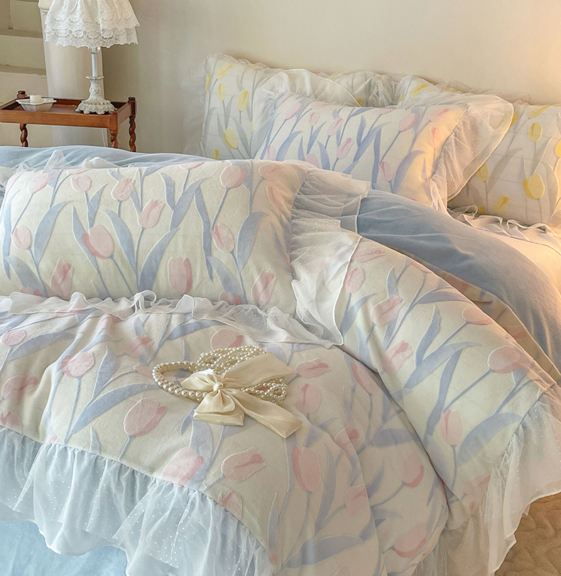 (总)玛奇朵 2025新款韩系少女全棉立体提花四件套-,青纱粉黛