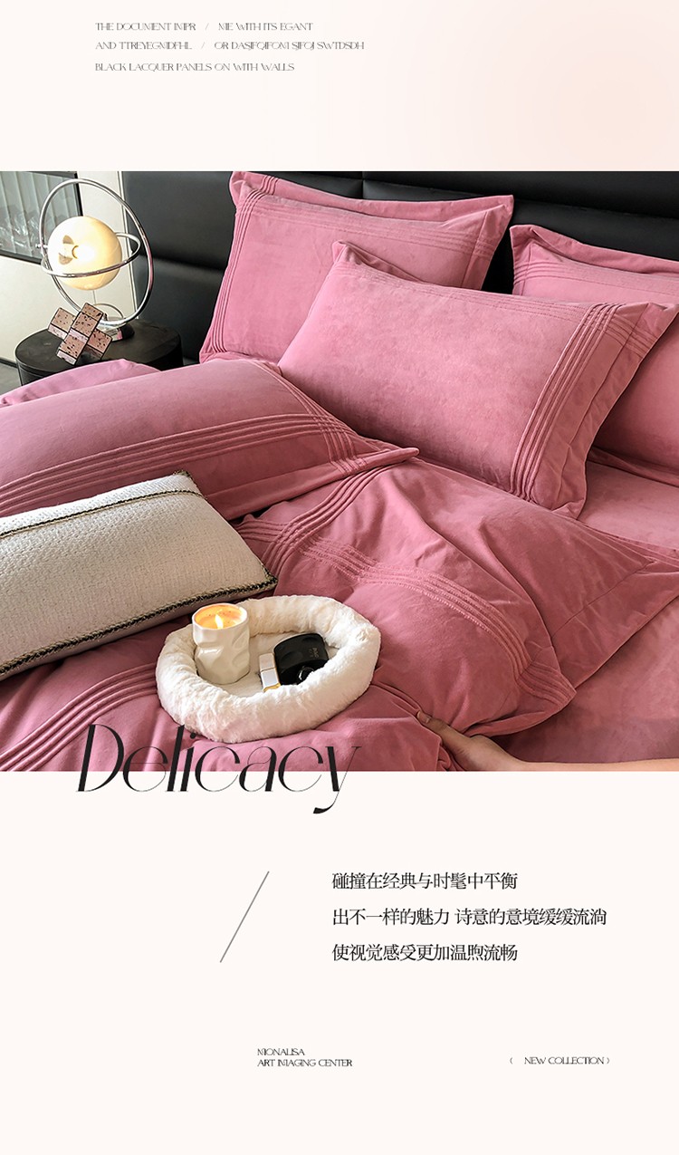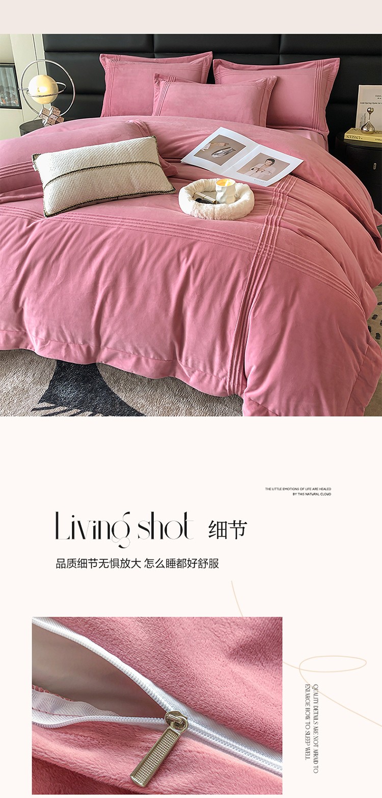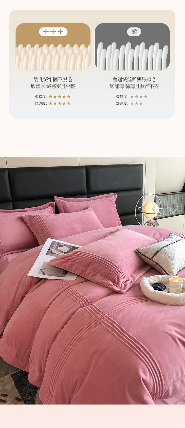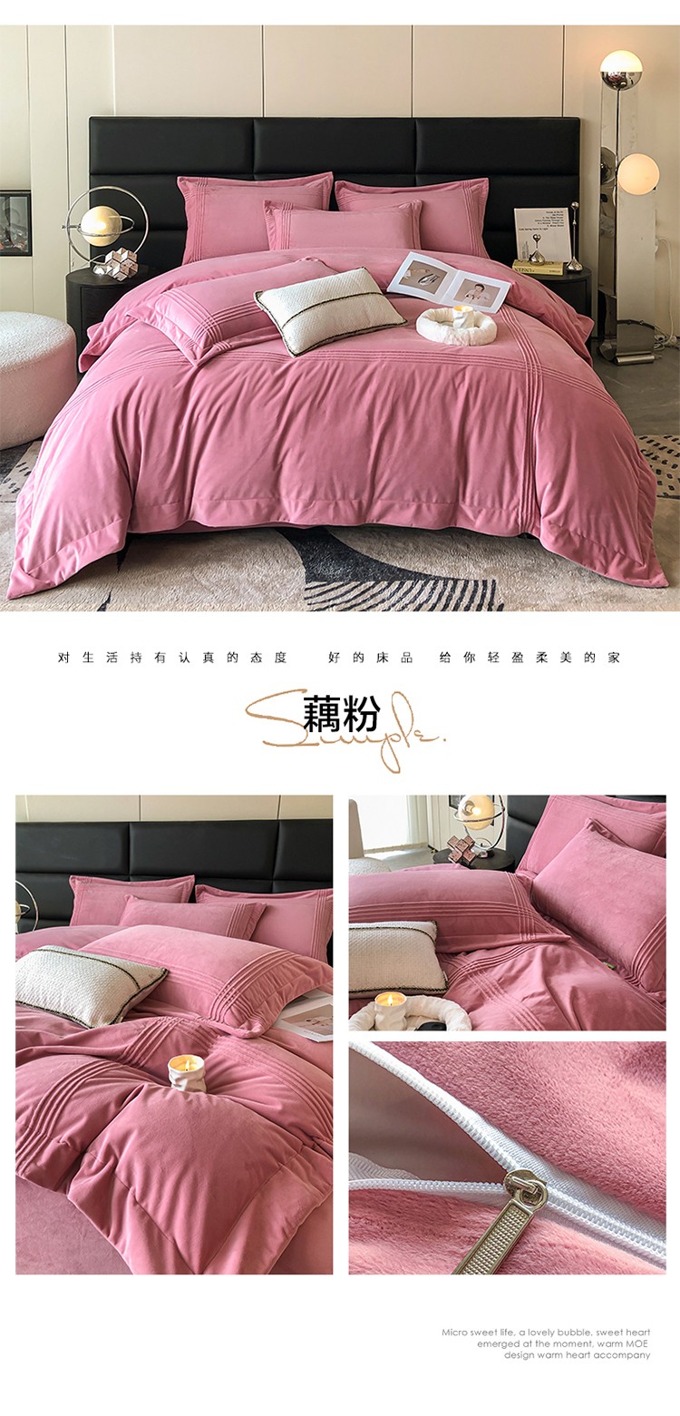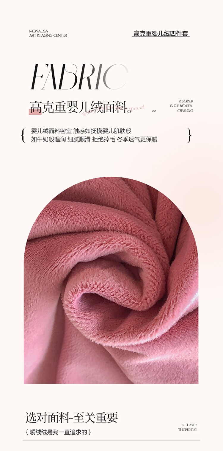 商品名称:嗯呢2023新款A类高克重婴儿绒牛奶绒埋绳保暖绒四件套 藕粉