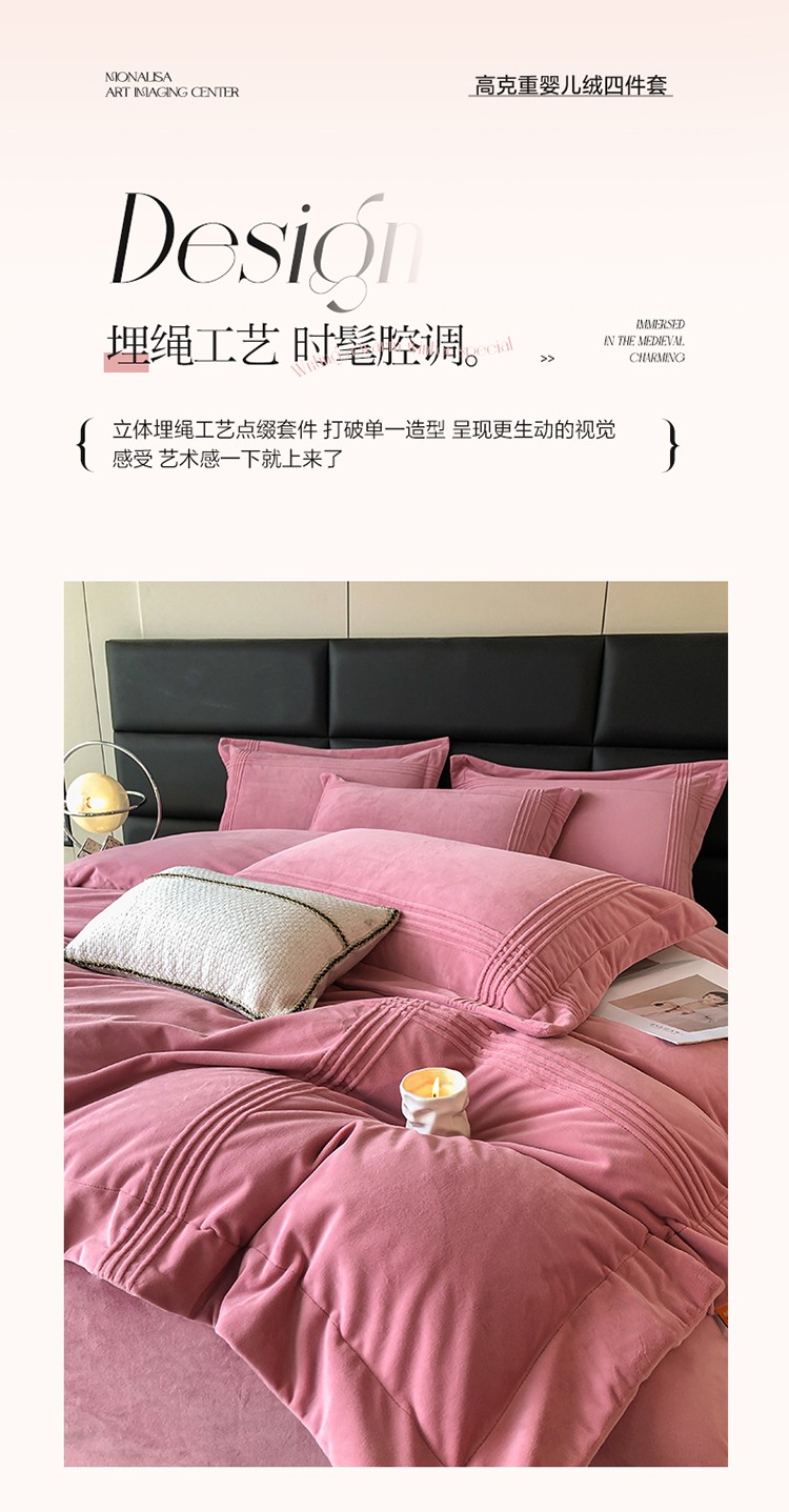 嗯呢2023新款A类高克重婴儿绒牛奶绒埋绳保暖绒四件套 藕粉