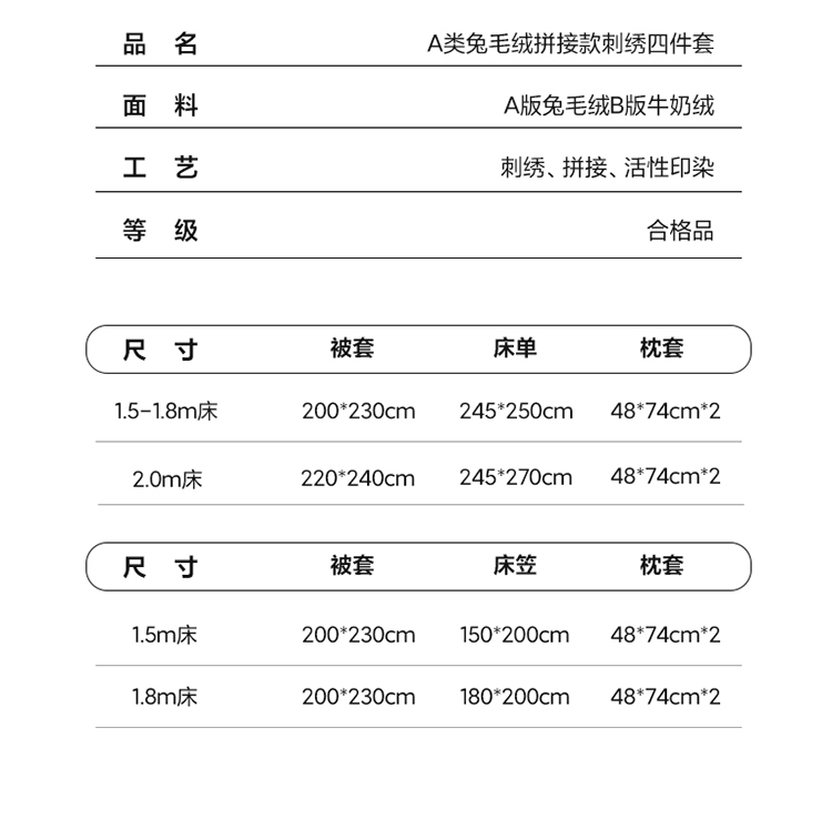 (总)嗯呢家纺 2025新款A类全棉刺绣四件套,薄荷绿,露娜粉,奶茶白,时尚灰,薰衣紫,婴儿蓝