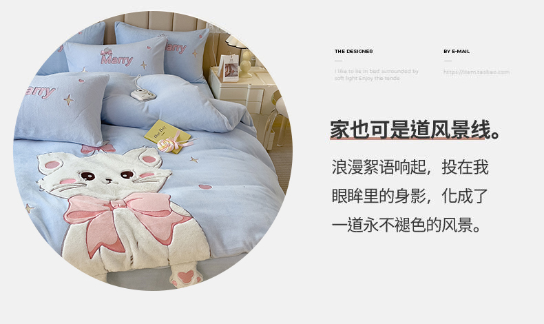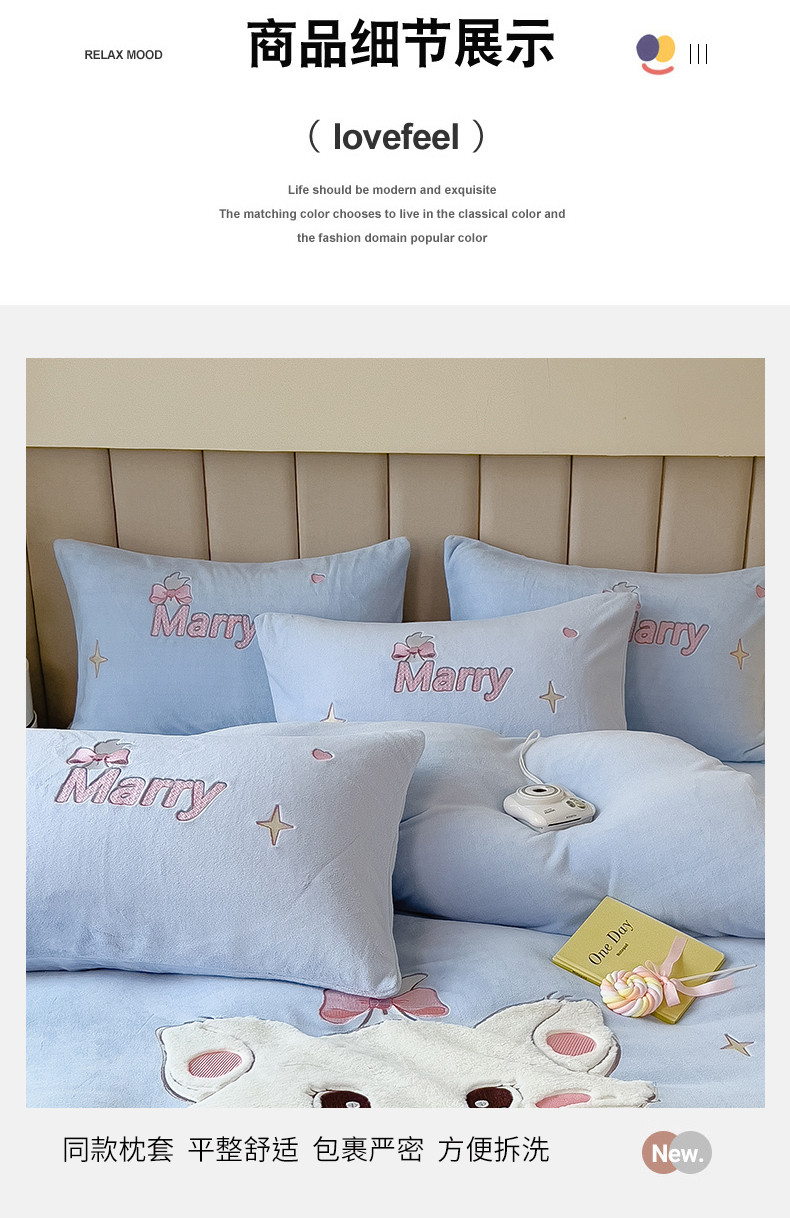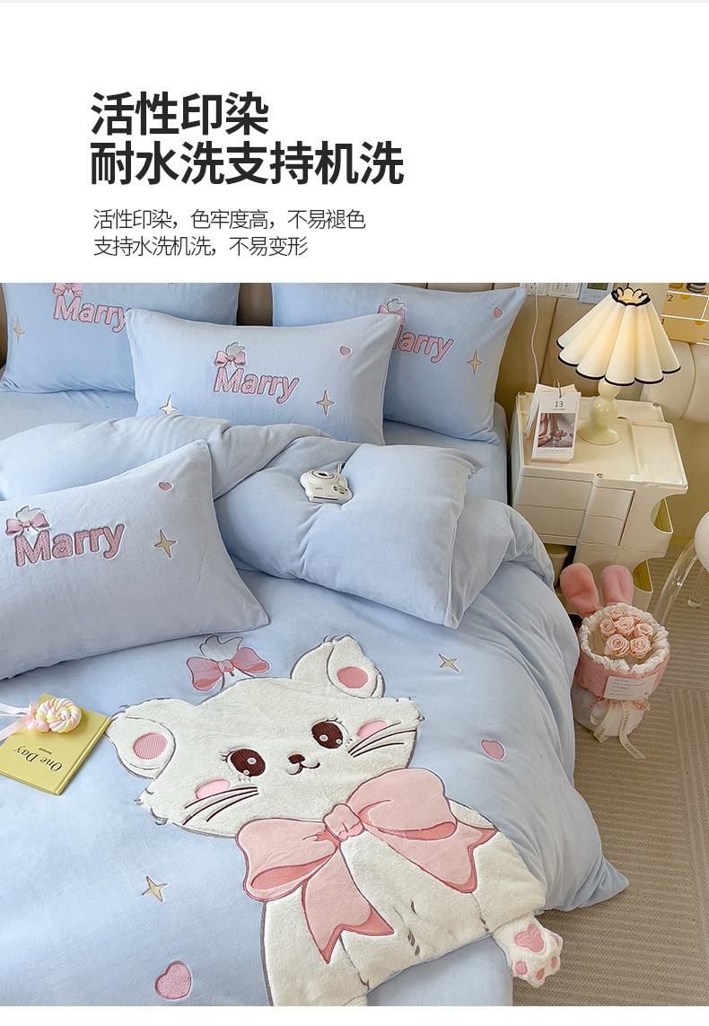商品名称:新款牛奶绒毛绒贴布绣花保暖四件套-玛丽 玛丽-兰