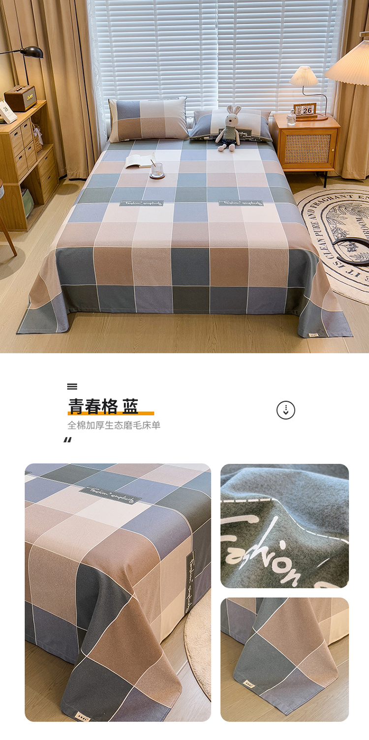 芃成家纺 2023磨毛单床单 青春格-蓝