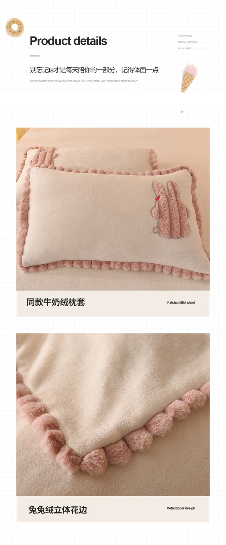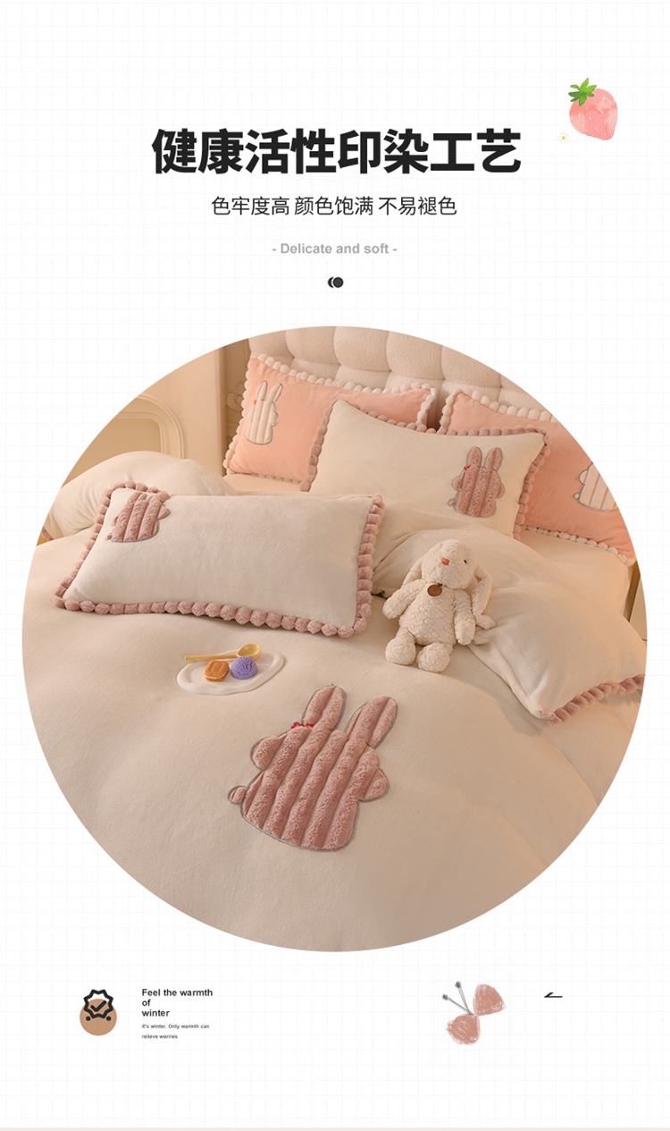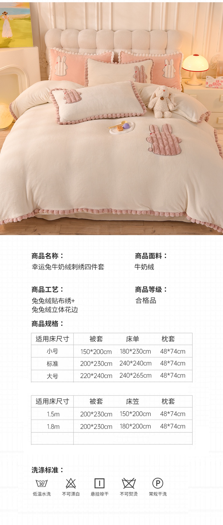 商品名称:艾米家居 2023新款秋冬牛奶绒刺绣花边四件套-幸运兔 白色