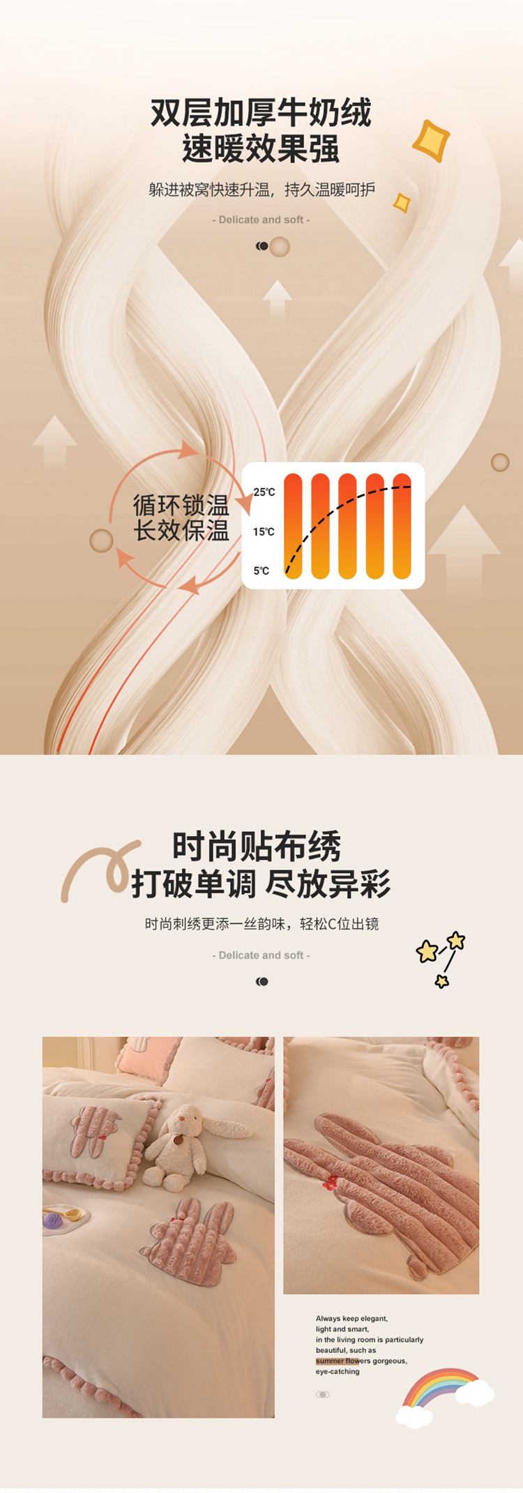 (总)艾米家居 2025秋冬新款牛奶绒泡泡印花花边四件套,豆沙条纹粉,蝴蝶花,太阳花