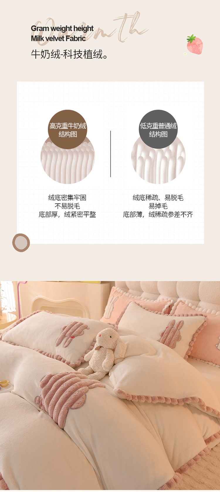 (总)艾米家居 2025秋冬新款浮雕牛奶绒花边四件套,白色,豆沙,粉色