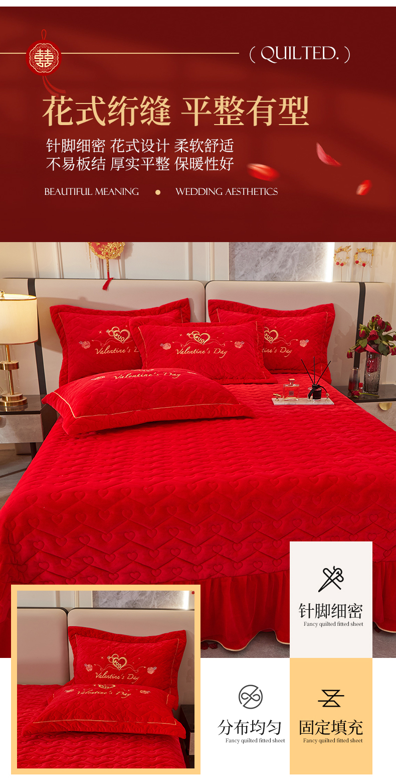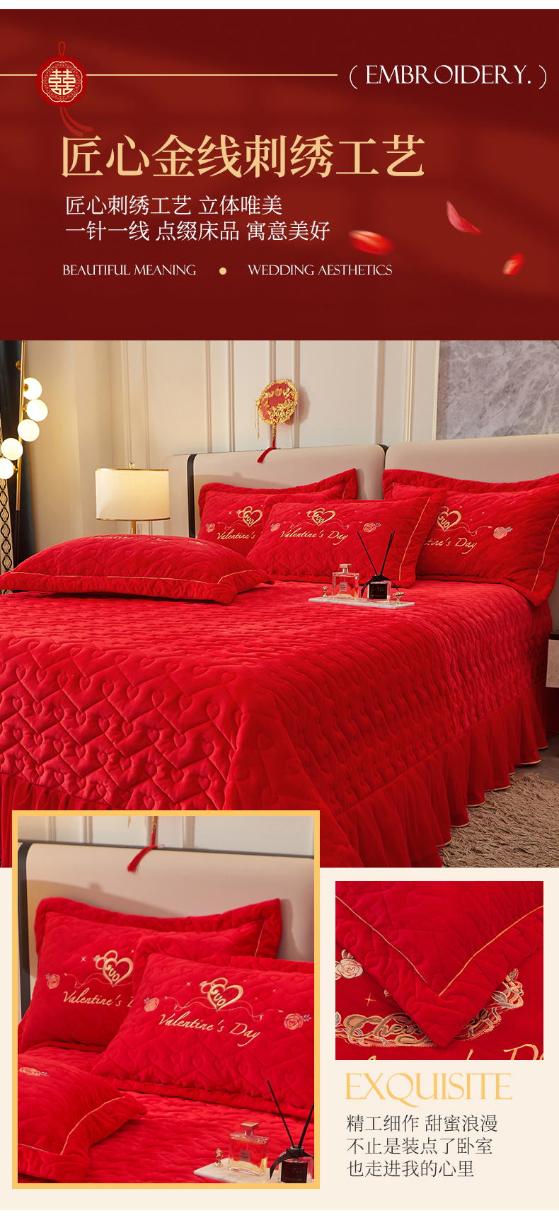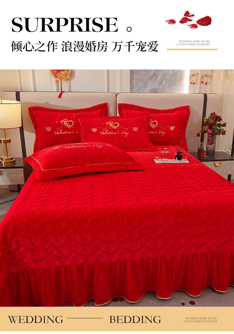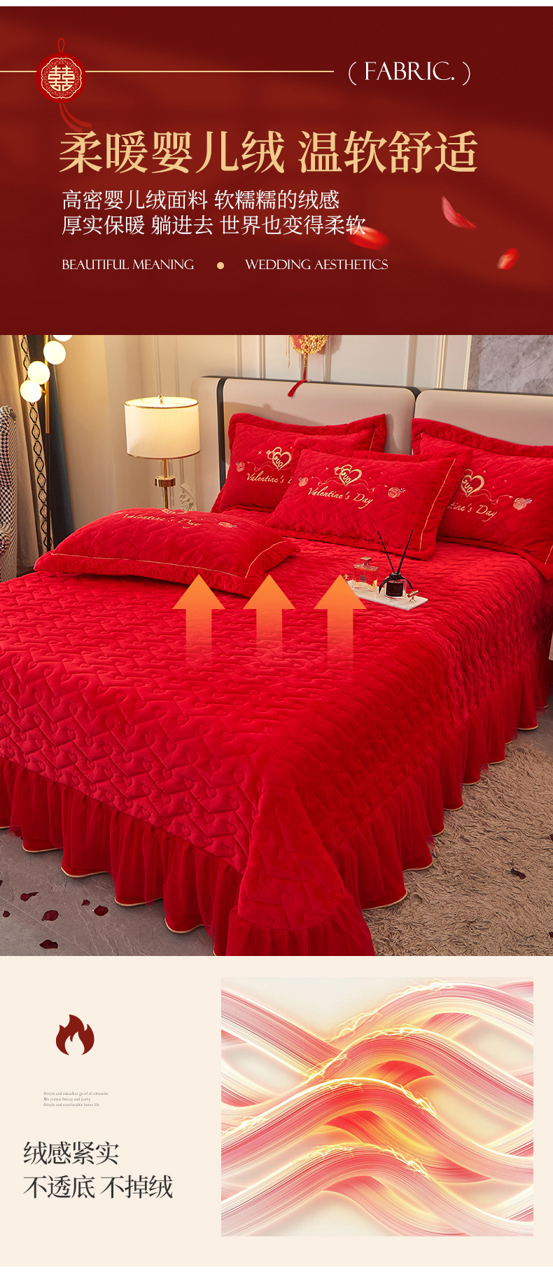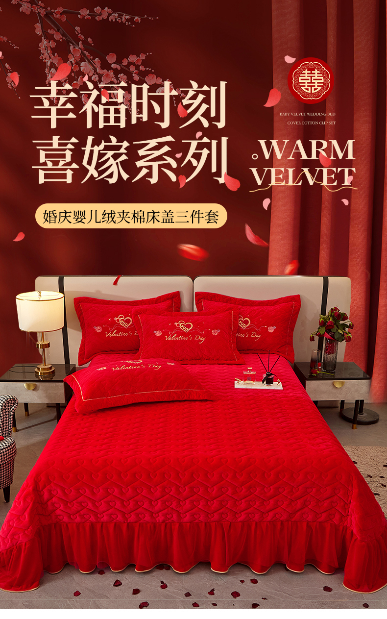 宜凡家纺 2023秋冬新品婴儿绒婚庆床盖三件套 欢愉