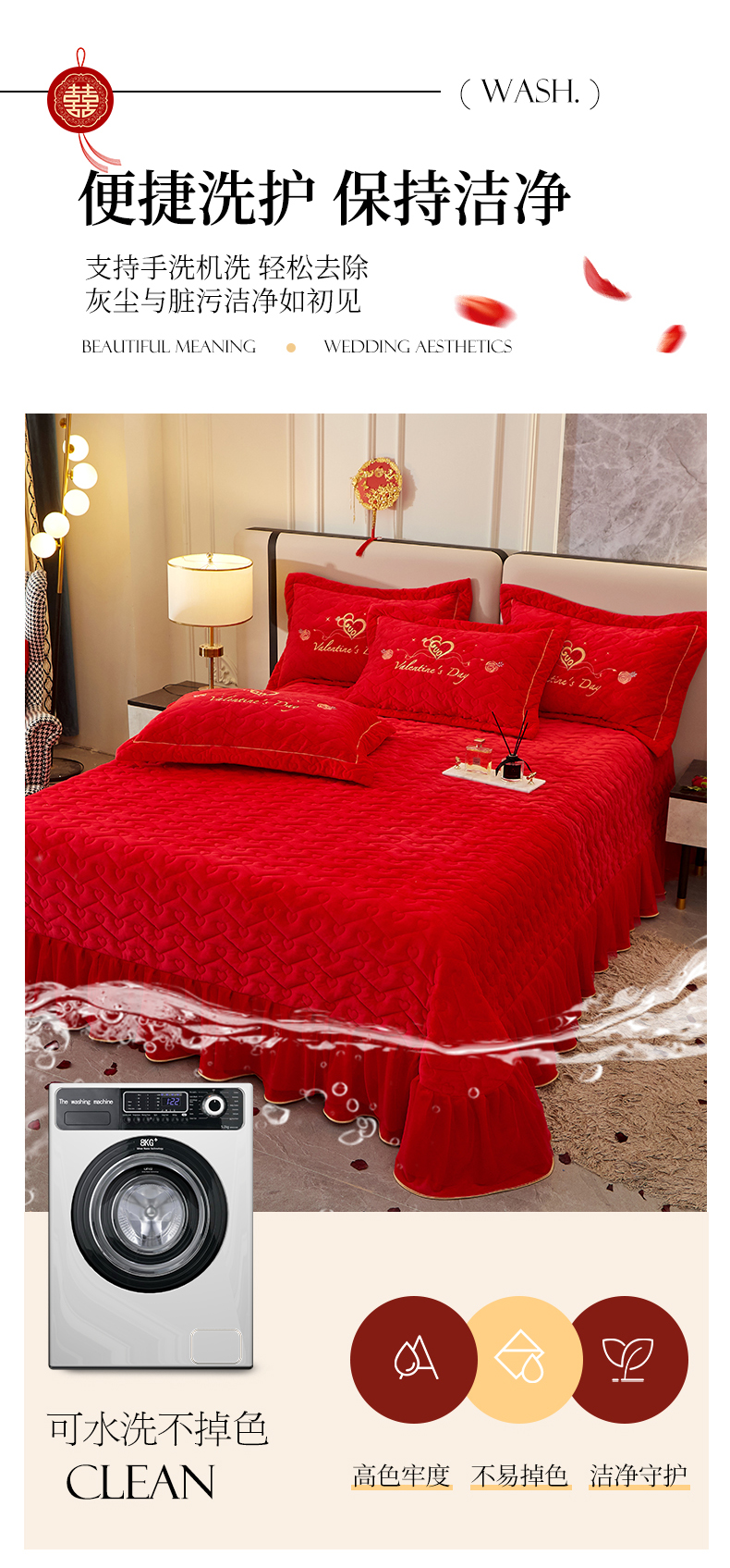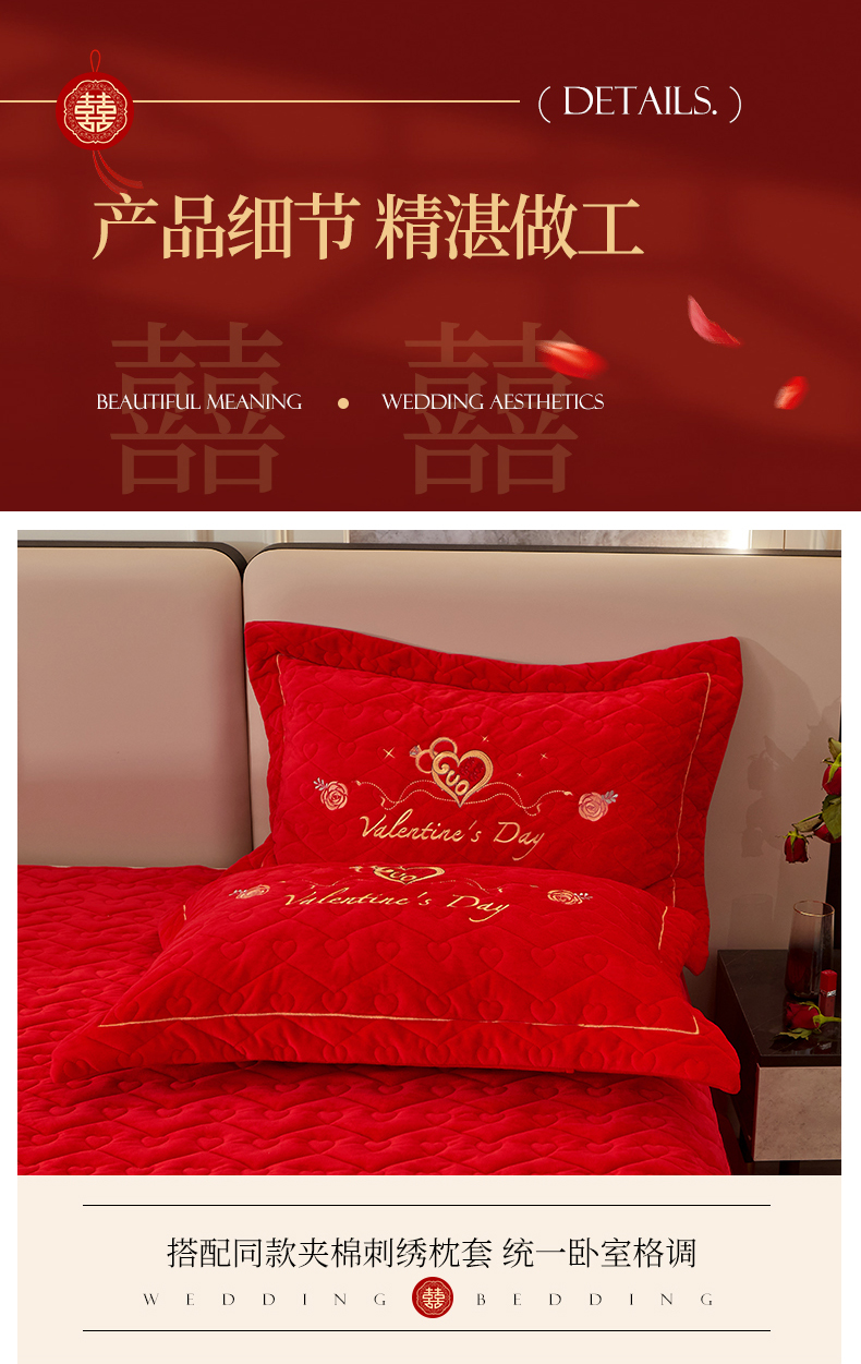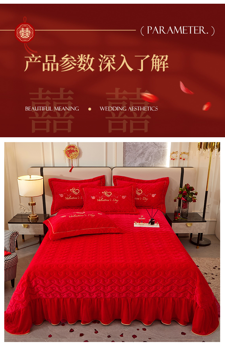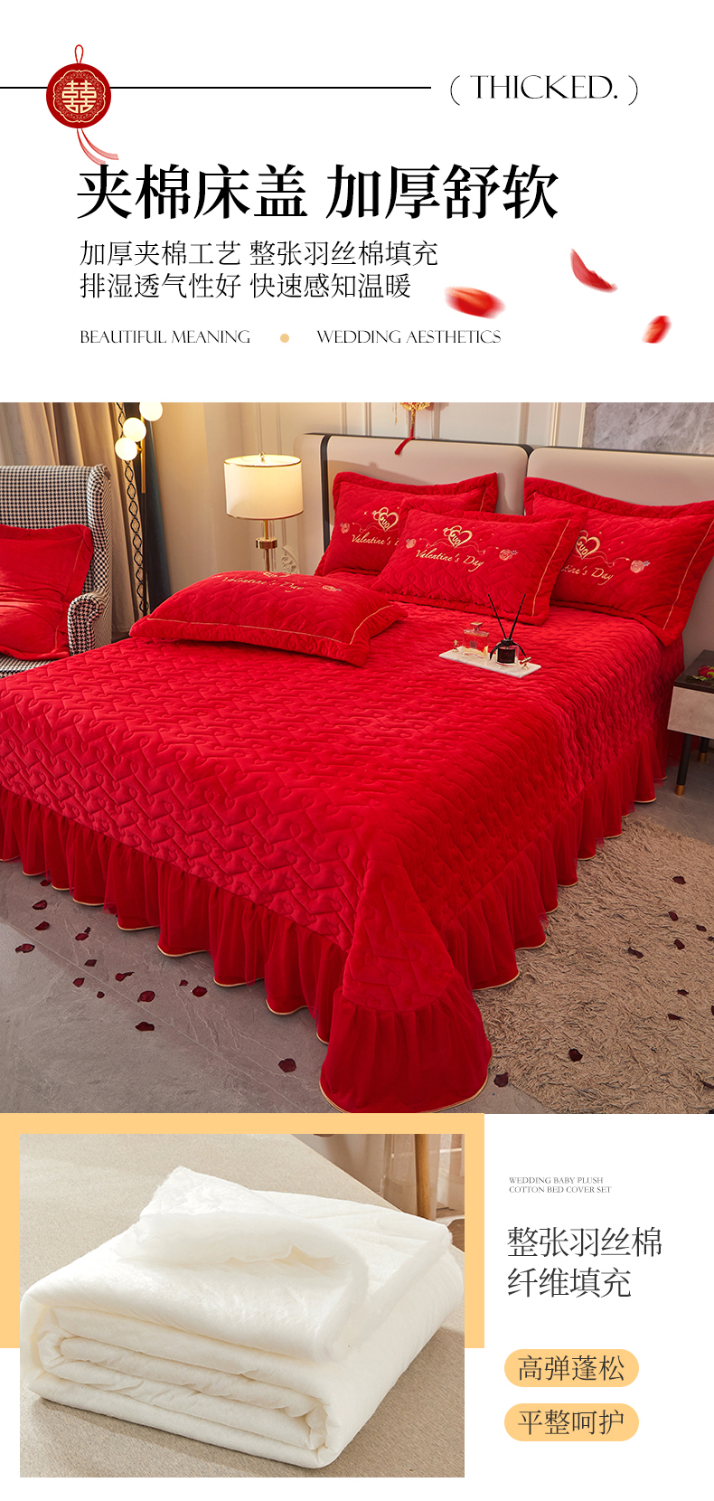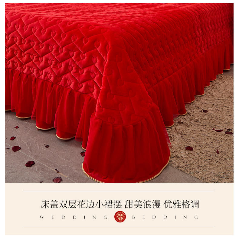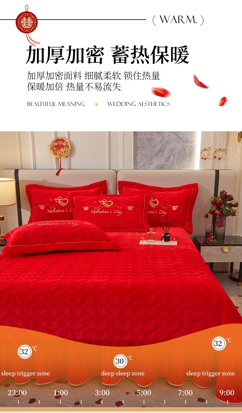 宜凡家纺 2023秋冬新品婴儿绒婚庆床盖三件套 欢愉