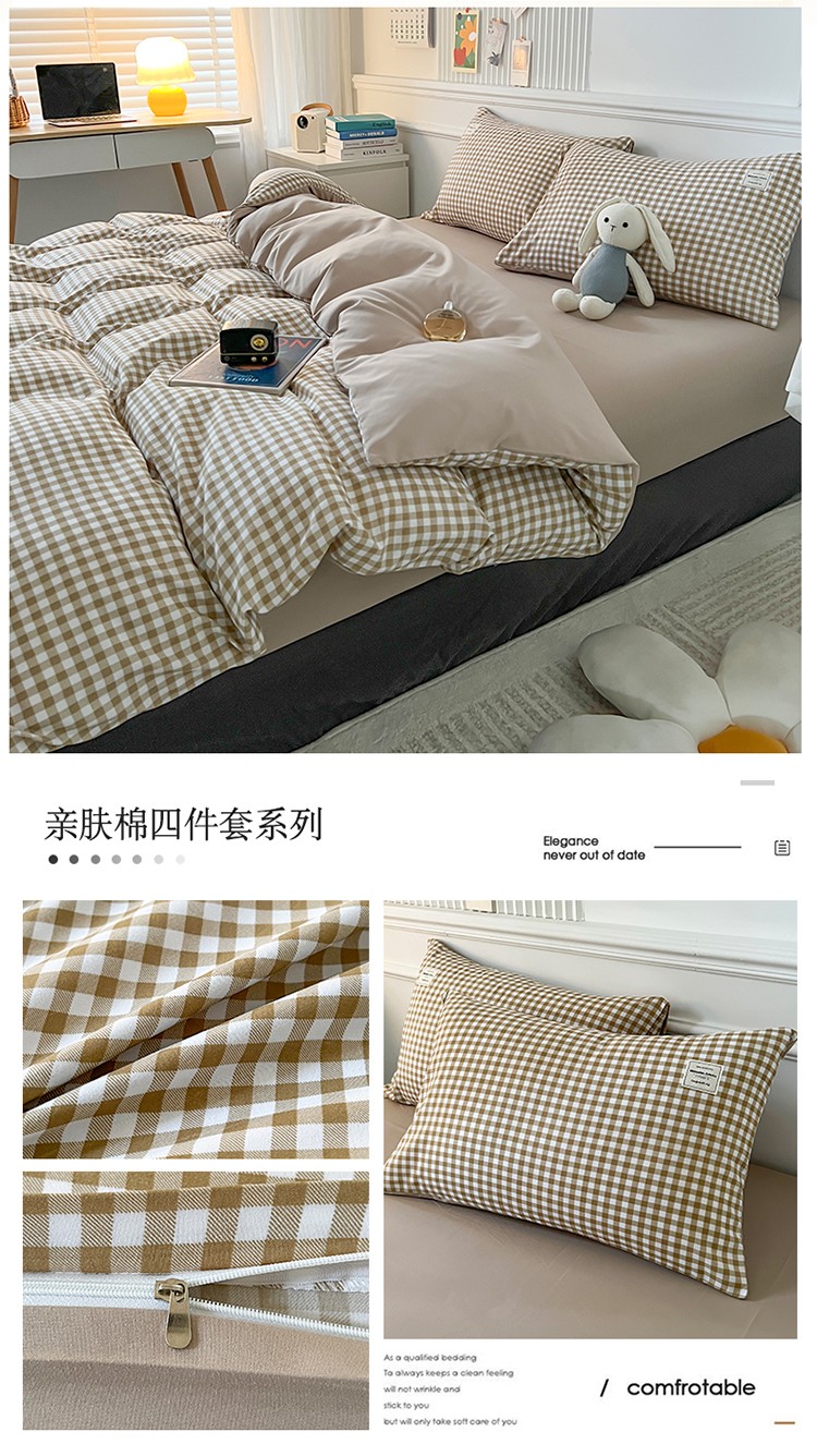 当前位置: 91家纺网 > 商品网购 > 床品套件 > 四件套 > 化纤活性四件套 > 2025新款日系简约风格子亲肤磨毛四件套 白条蓝