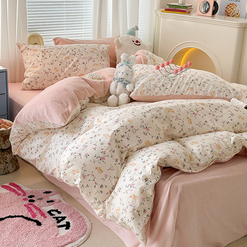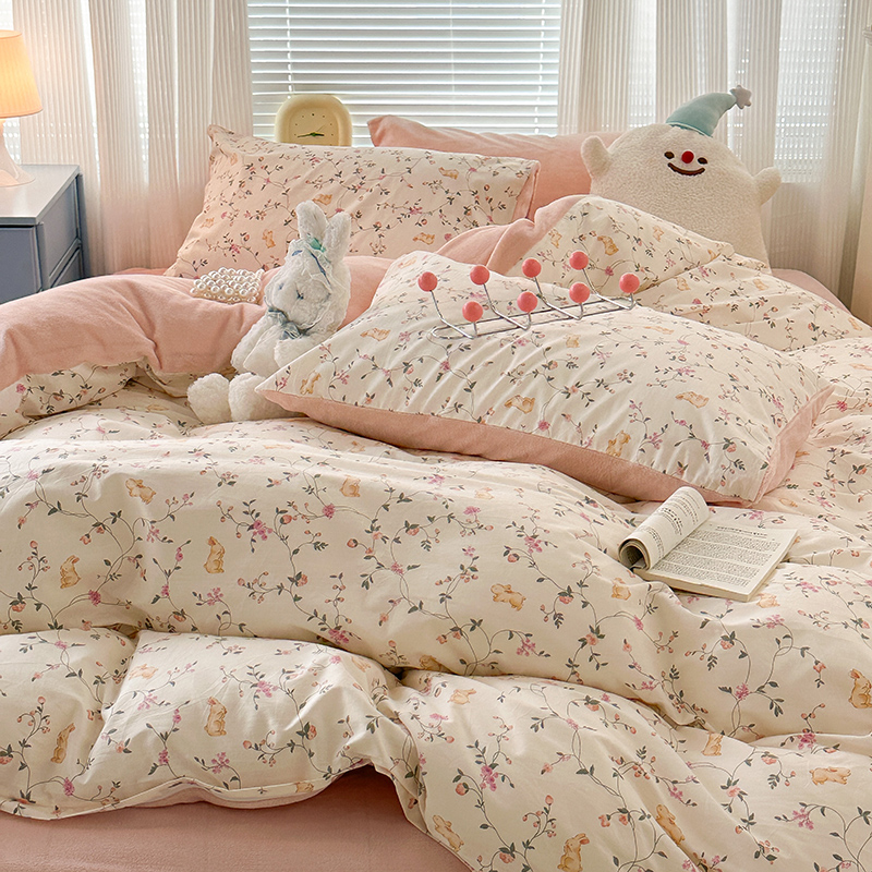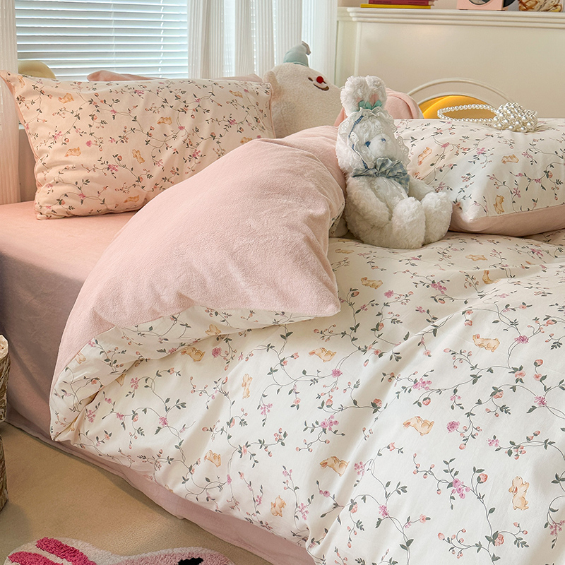 昔可家纺 2023新款y2k卡通印花系列棉加绒四件套 茉莉兔