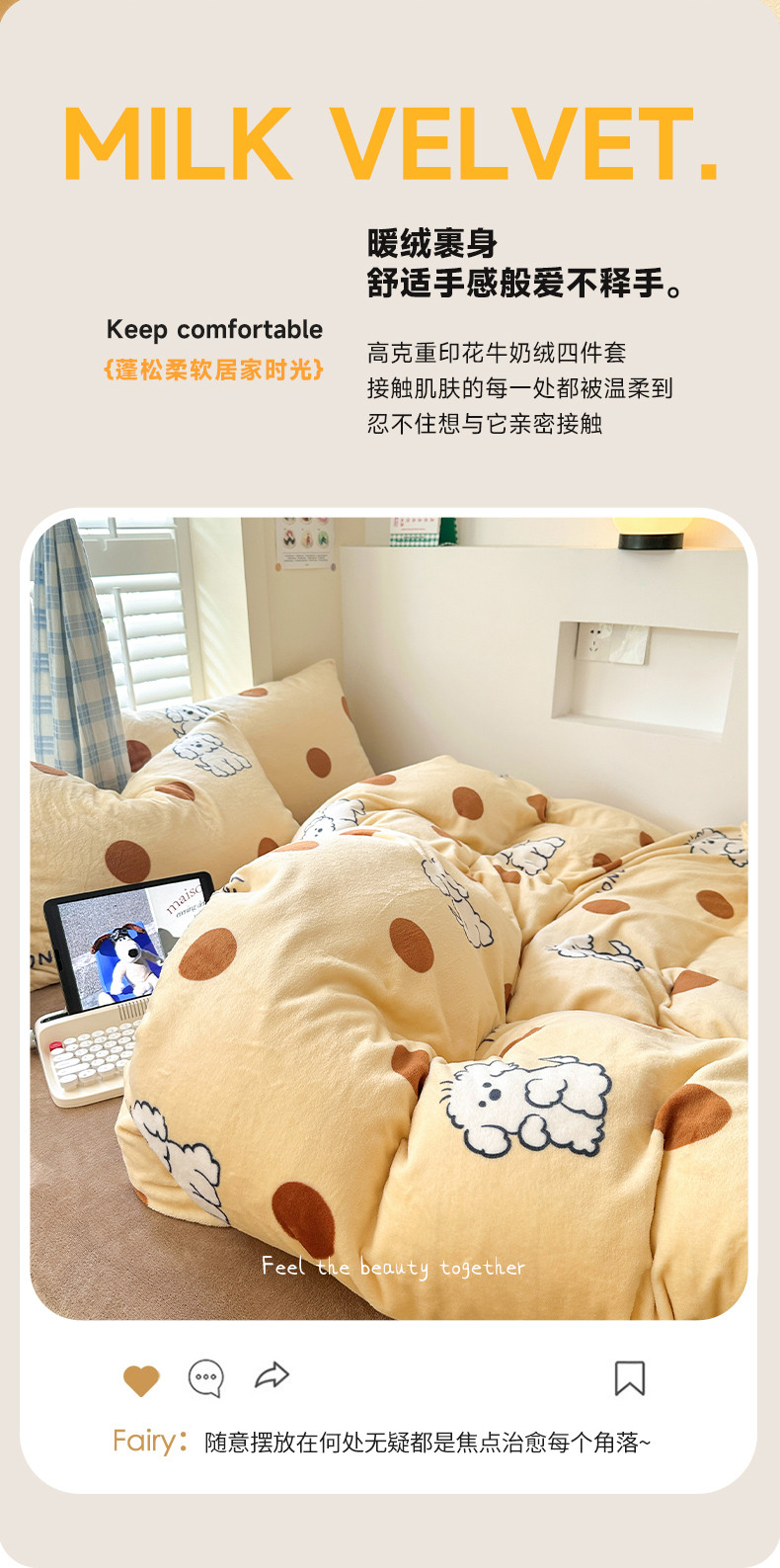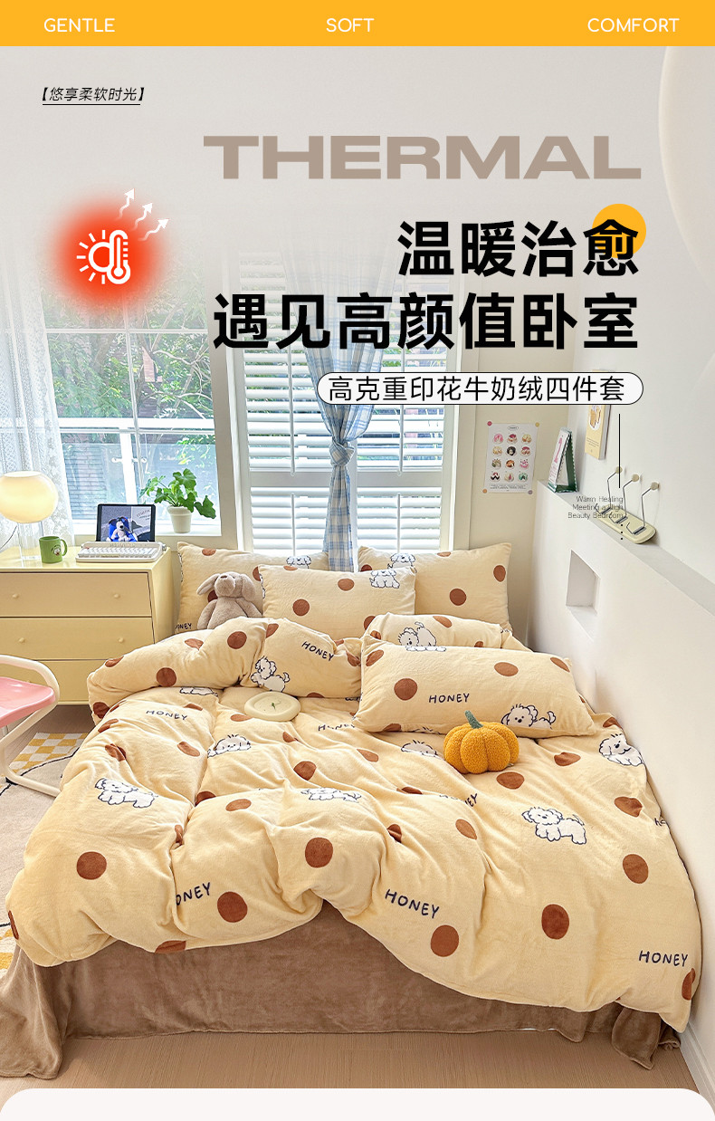 (总)N先生 2023秋冬新款220克高克重牛奶绒印花四件套