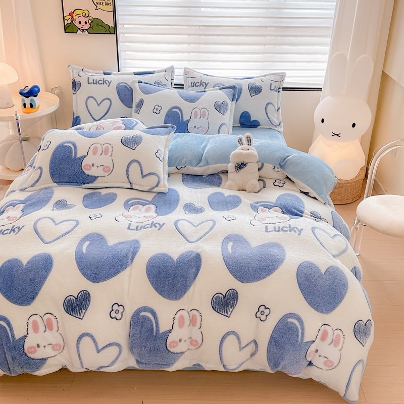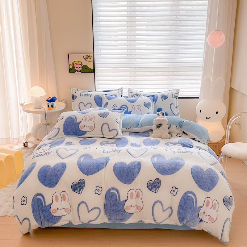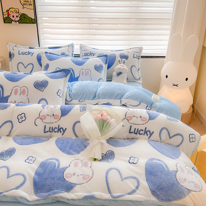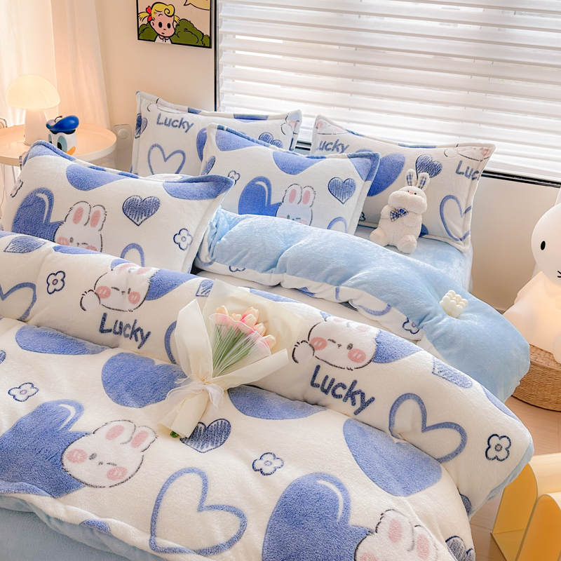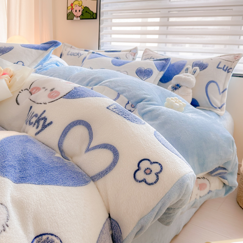 美莱 2023爆款雪花绒四件套法莱绒牛奶绒被套量大价格优惠 爱心兔