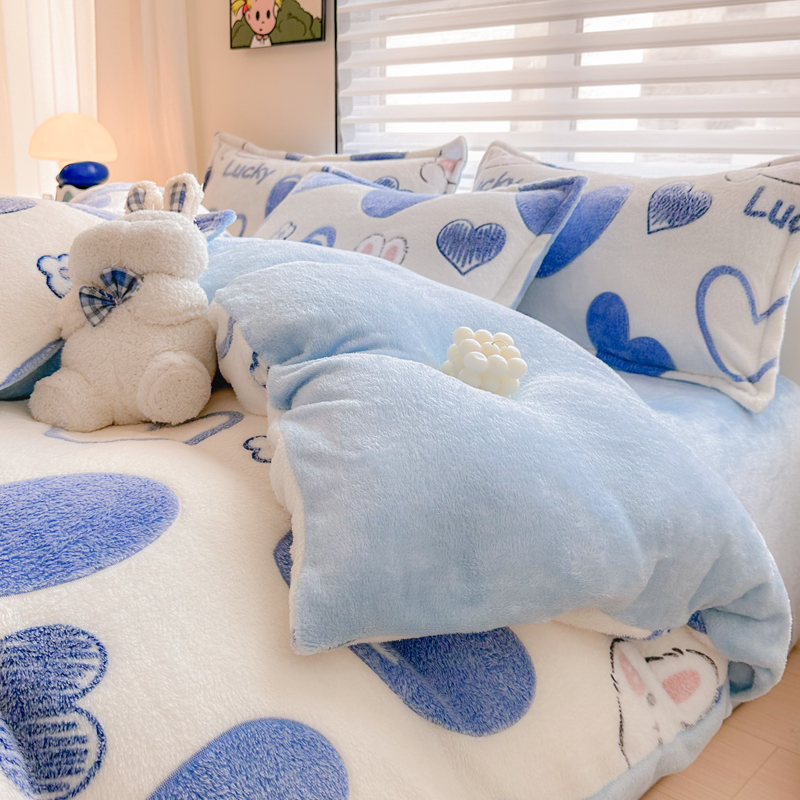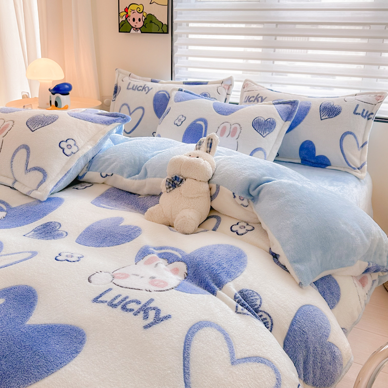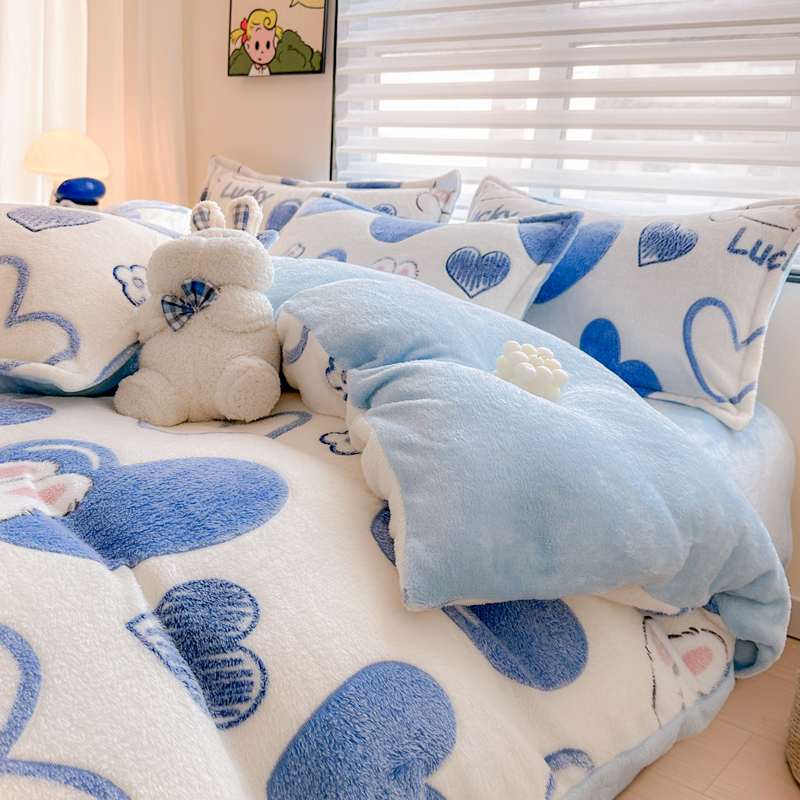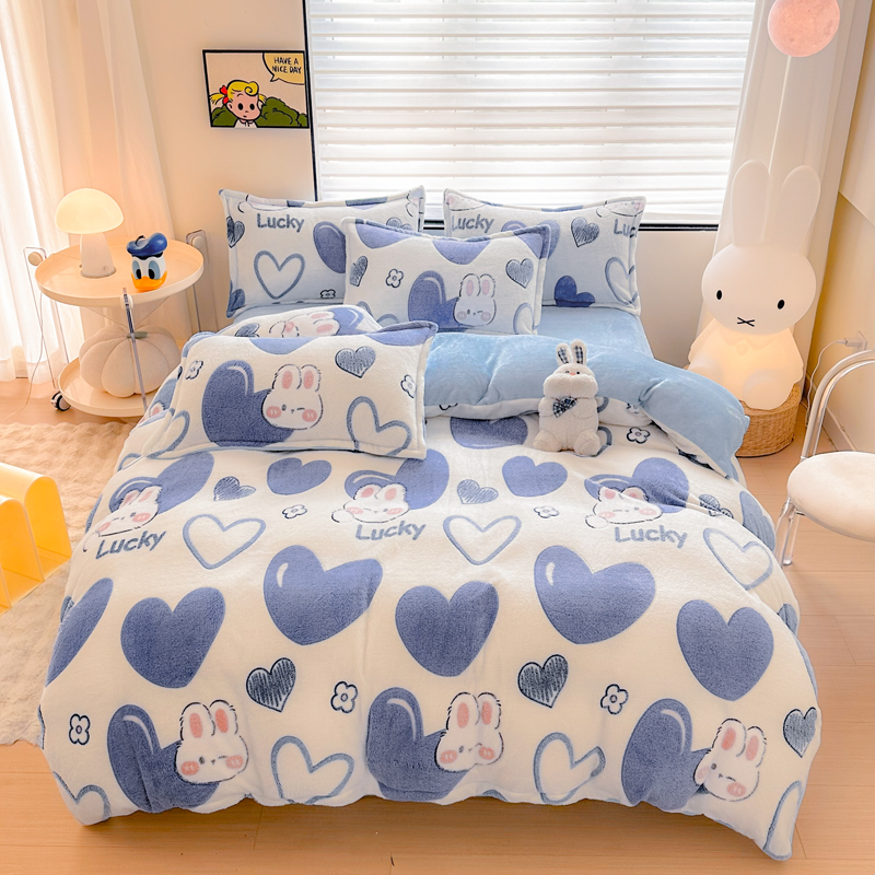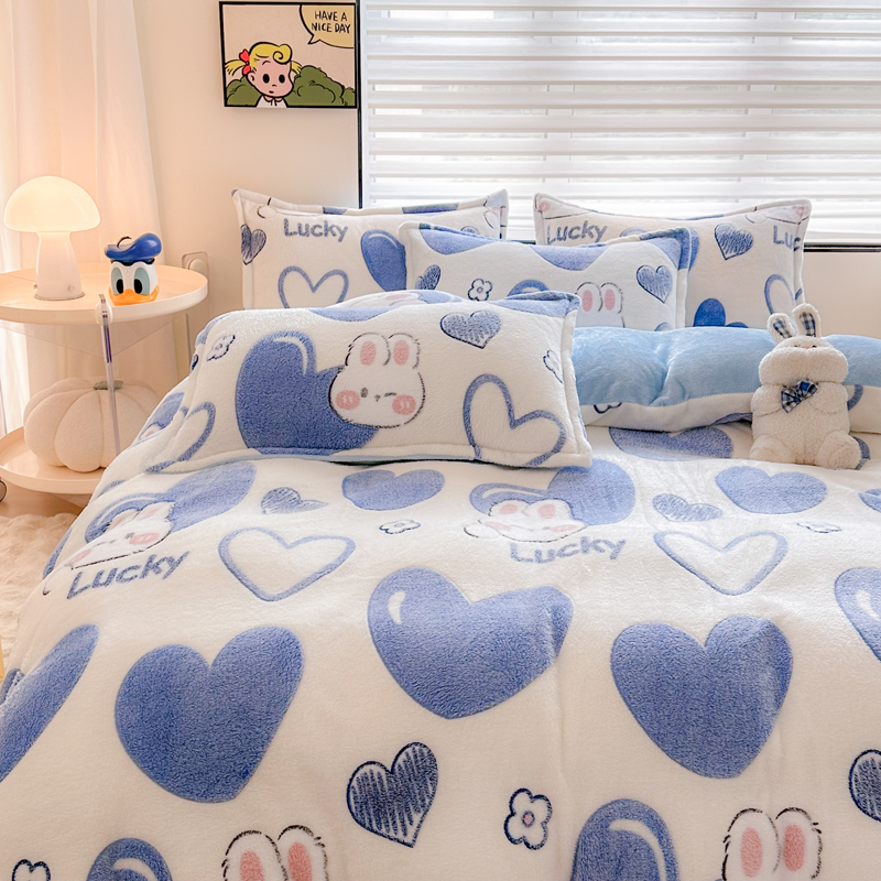 美莱 2023爆款雪花绒四件套法莱绒牛奶绒被套量大价格优惠 爱心兔