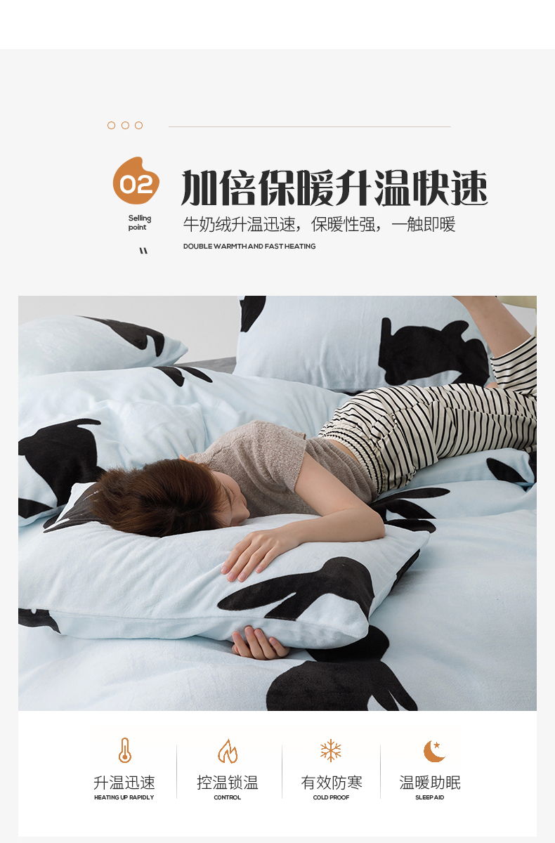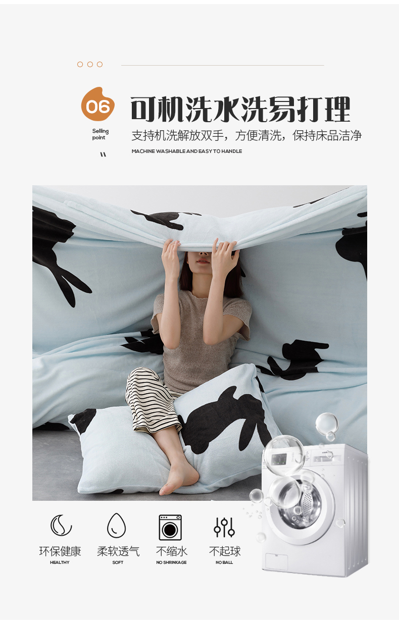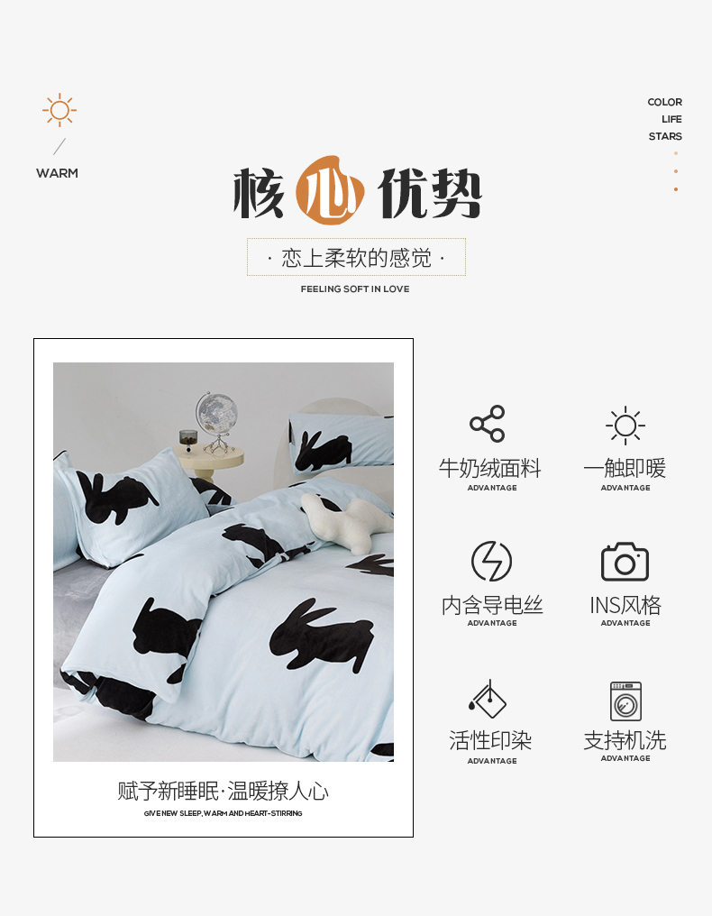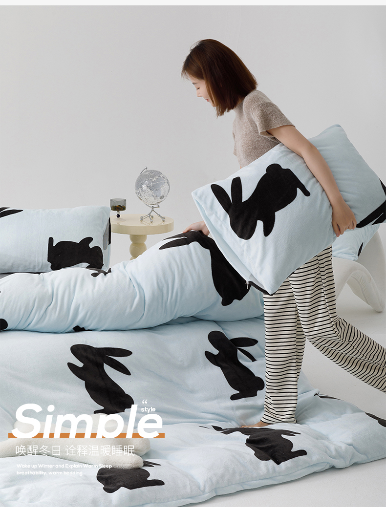 商品名称:桃子2023新款ins轻奢简约潮派极简高级时尚兔本兔高克重牛奶绒系列四件套 绒兔本兔-水蓝
